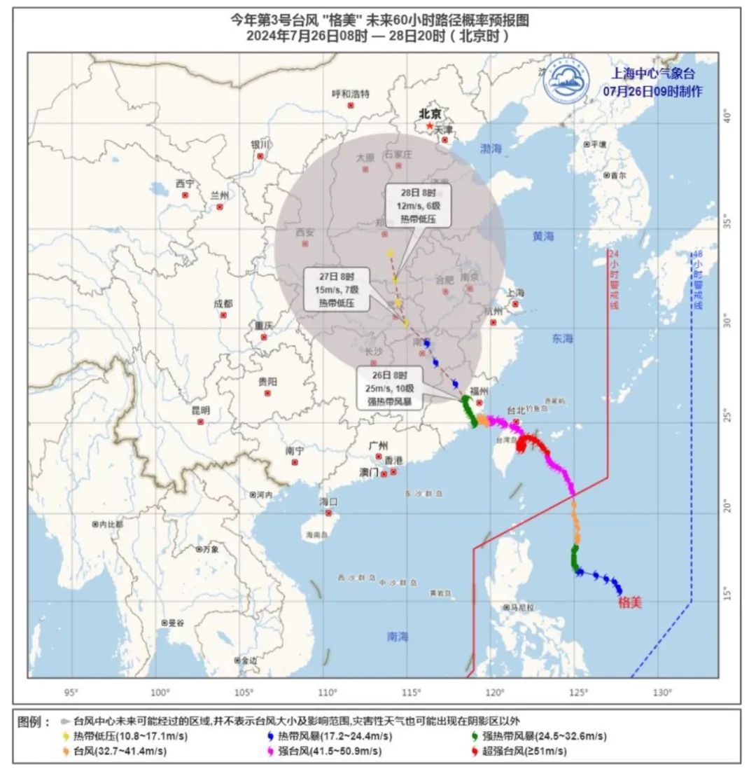 今明两天(26-27日)嘉定风力将进一步增大到8~9级,高层建筑阵风可达9~10级。受“格美”外围雨带影响,局部地区可出现短时强降水(小时最大雨强30~50毫米),累积雨量可达大雨到暴雨。