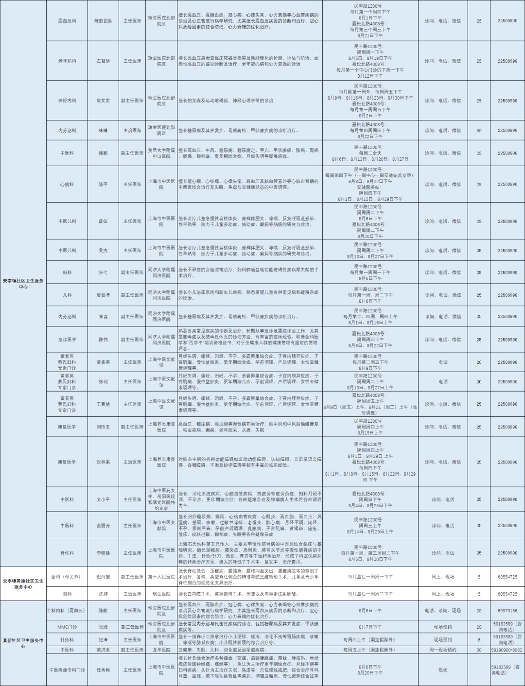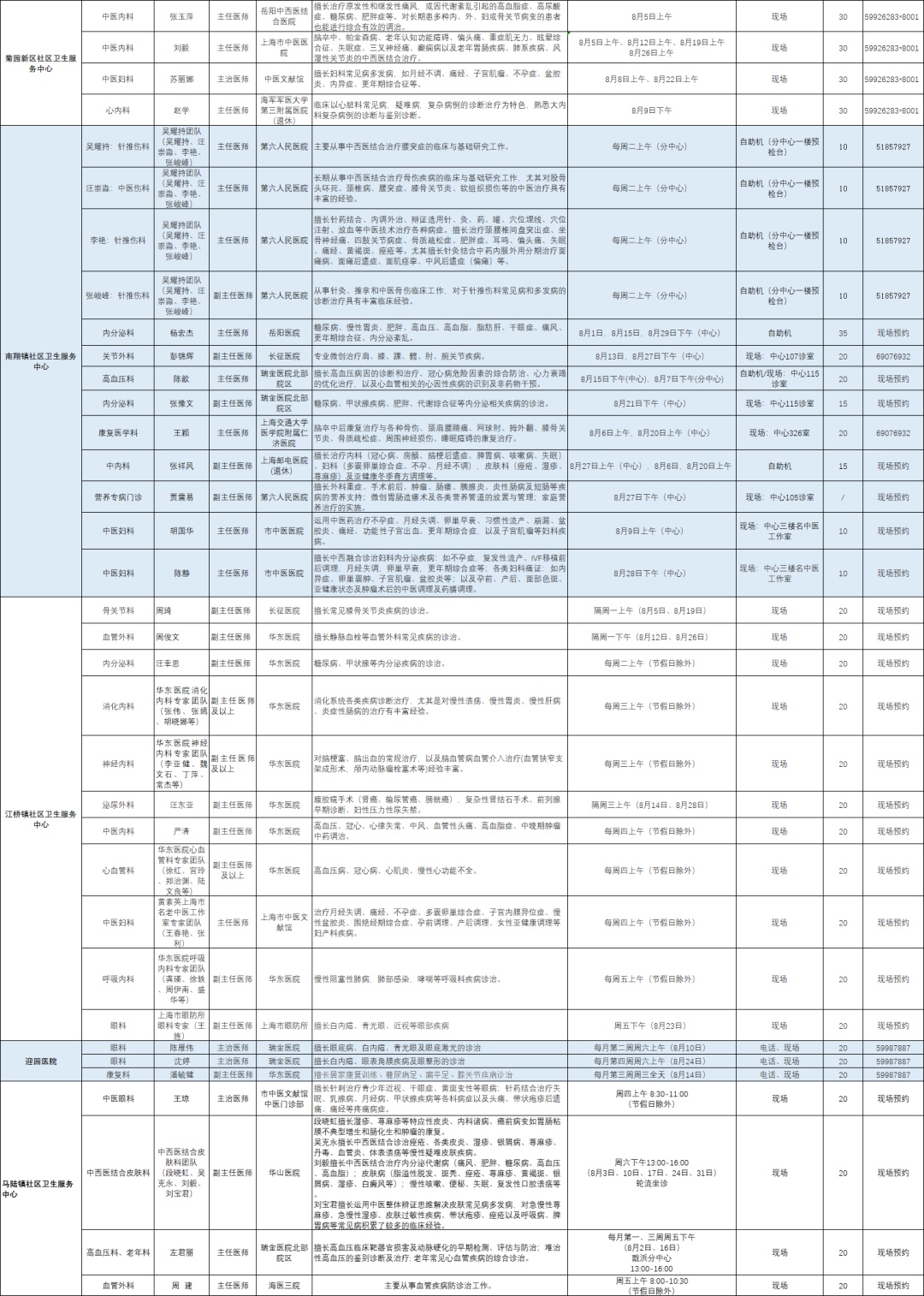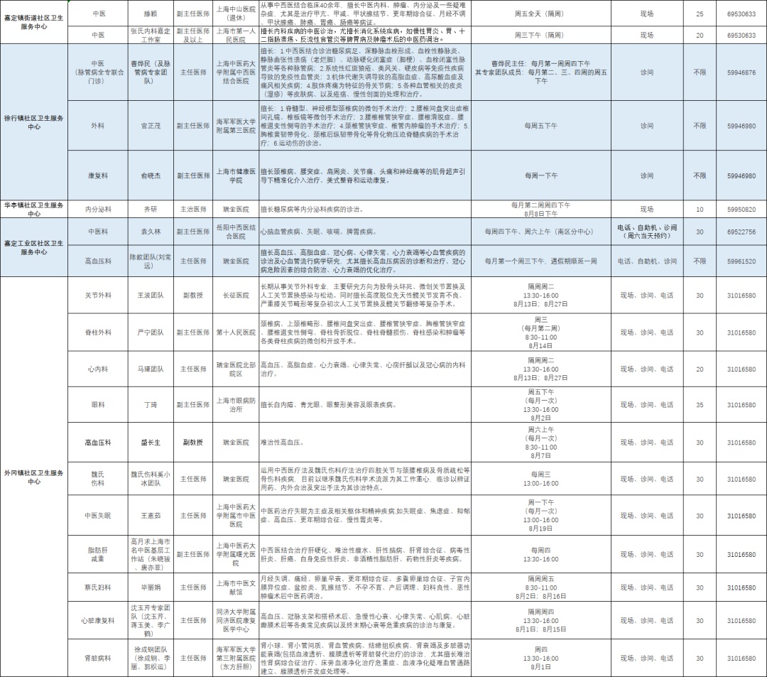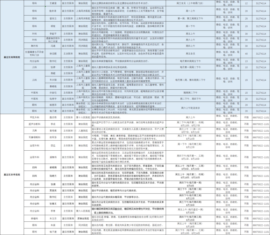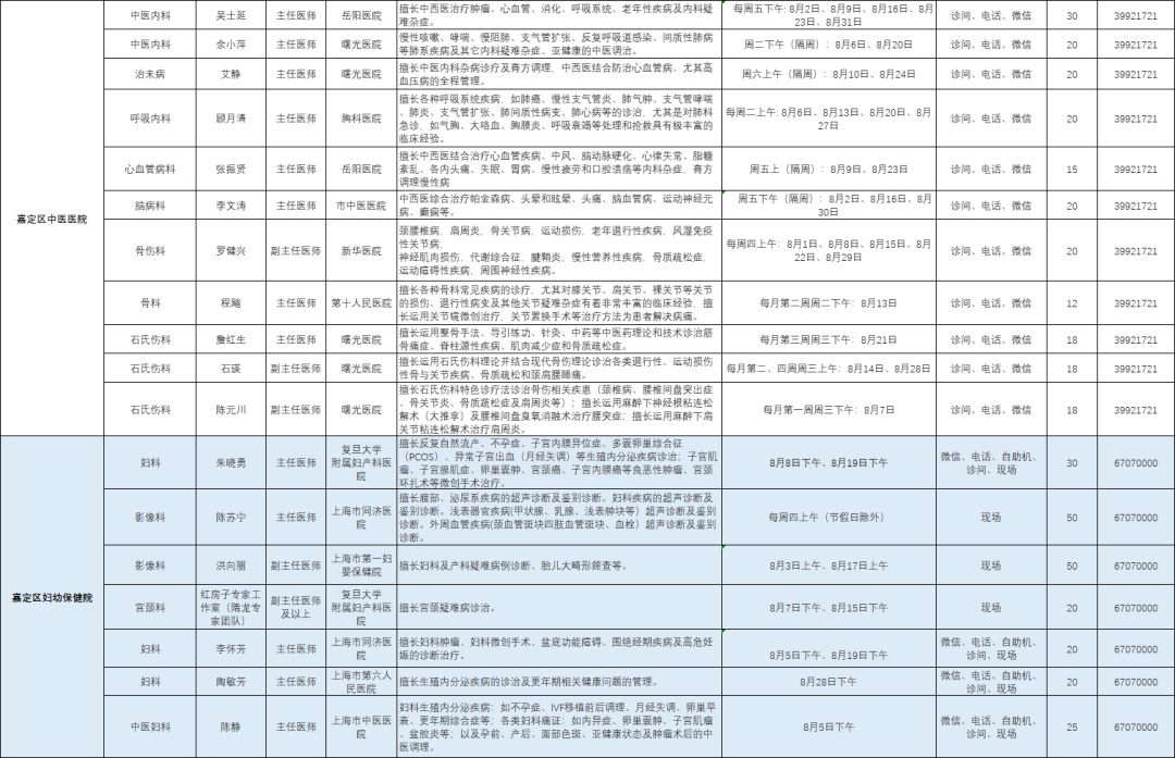 嘉定区各医院市级专家8月定期开诊信息来啦