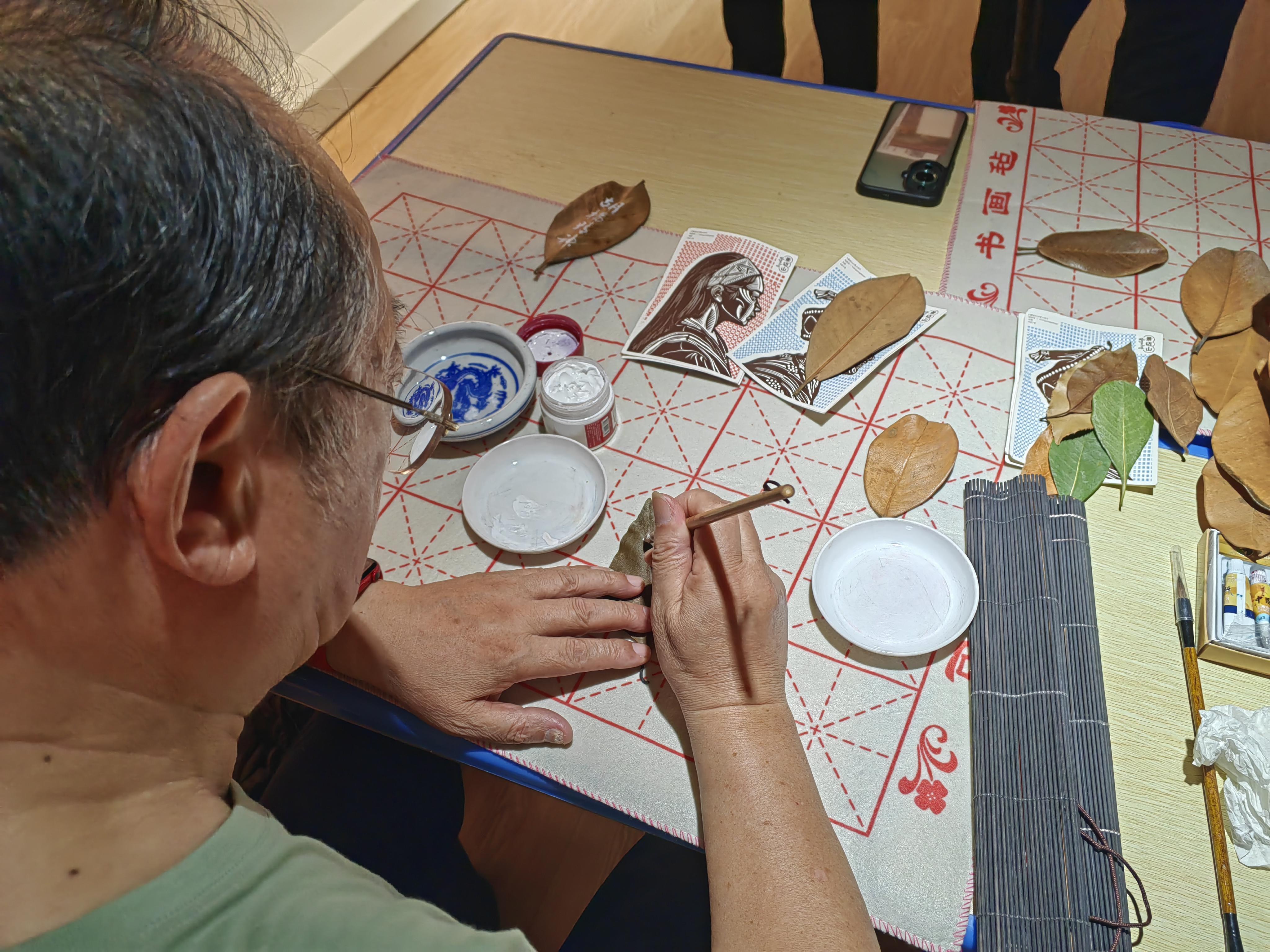 8月3日下午,记者在上海公益新天地举办的2024上海社会组织体验展中看到,已经是耄耋之年的书画家董友初老师正在现场创作落叶画。只见董老师根据落叶的形状、颜色等特点,进行创意设计,确定作品的主题和构图。董老师告诉记者,收集树叶一般在秋天进行,选择树叶完整和颜色鲜艳的落叶。创作树叶画一般需要历经收集落叶、设计构思、修剪拼接、固定粘贴、绘制细节和调节完善这六个环节。经过艺术创作,展现树叶的自然之美和生命之力。因为每一片落叶都承载着季节的变迁和生命的轮回,通过艺术创作得以永恒。落叶画的创作过程充满了创意和想象,可以根据自己的喜好和创意进行自由发挥,创作出独一无二的艺术作品。在落叶画中,还蕴含着丰富的情感寓意。创作者可以通过作品表达自己对自然的敬畏之情、对生活的热爱之情以及对未来的美好憧憬。