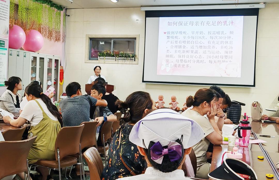 孕妇学校举办了母乳喂养知识讲座、新生儿护理沙龙,开展孕妇瑜伽、插花活动等系列课程。医护人员利用母乳喂养教具,生动、直观地教给准妈妈们正确喂奶的姿势,用专业知识解除了妈妈们的疑惑。同时,产科VIP病区的护士录制了宣传视频,营造关爱母婴、助力母乳喂养的氛围。