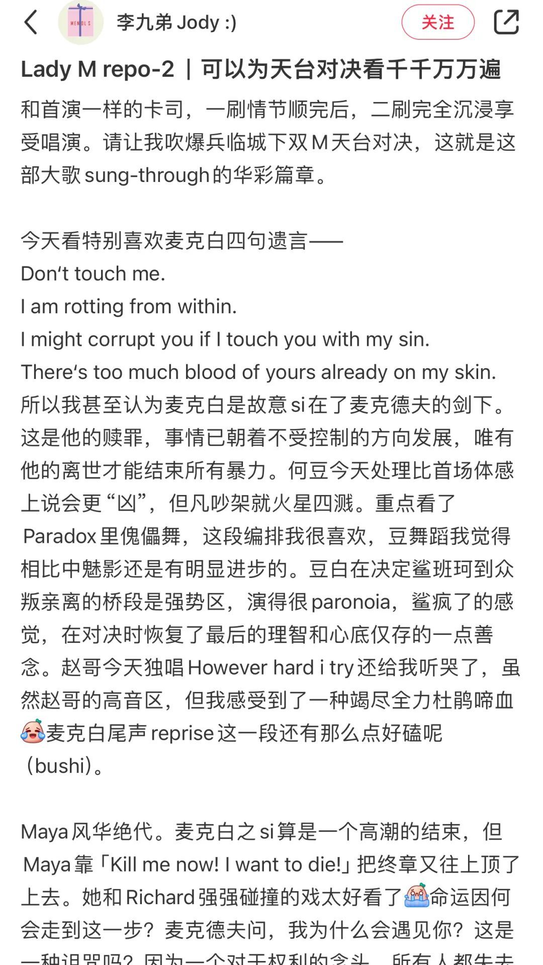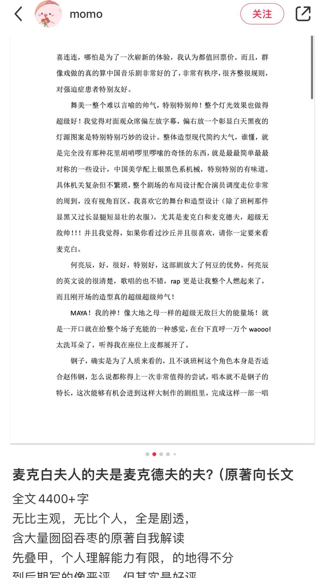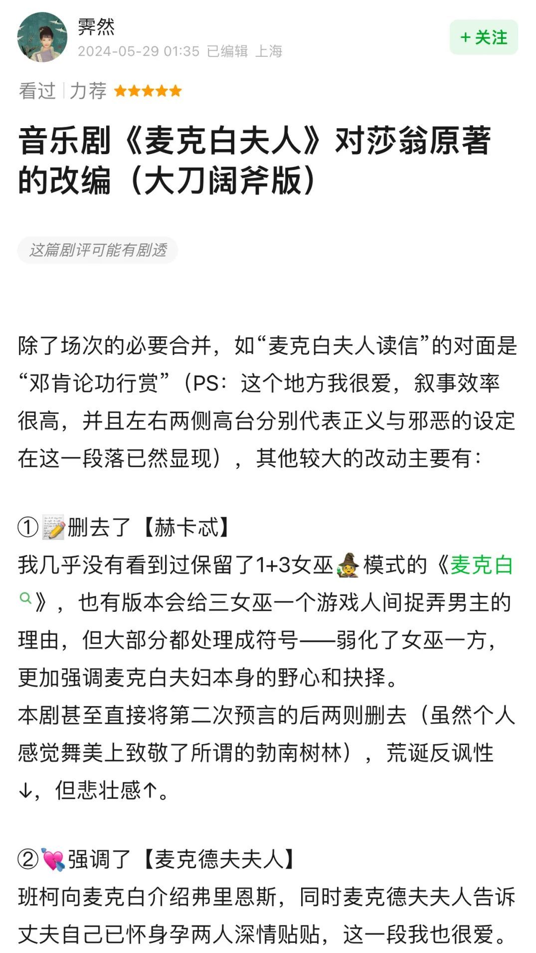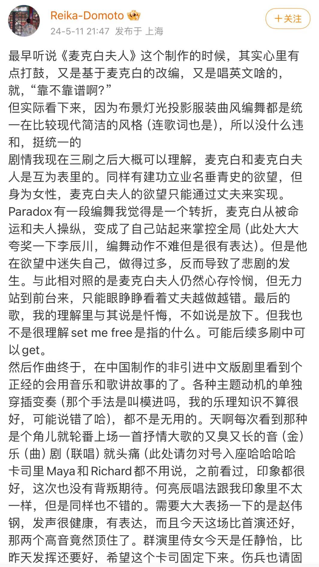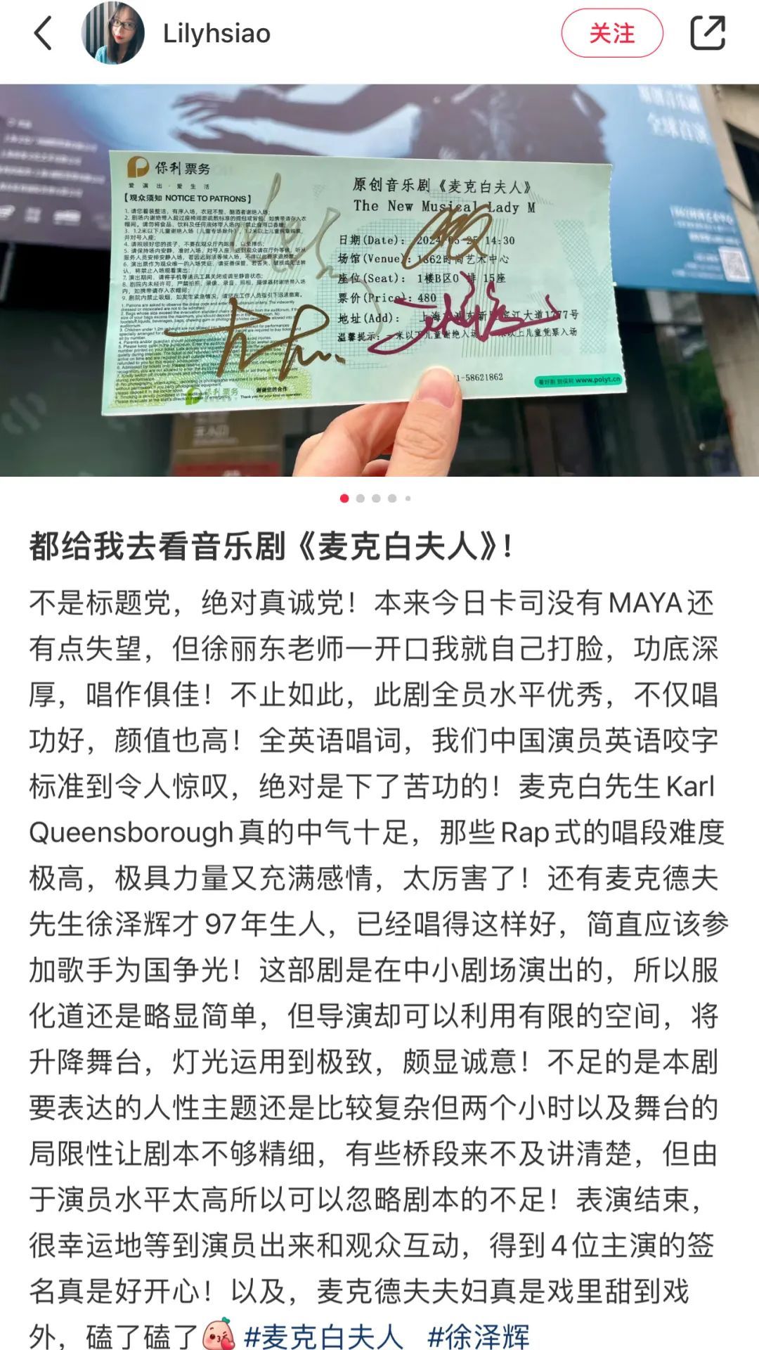 《麦克白夫人》首轮连演30场,迅速在媒体与观众群中引起破圈裂变传播,收获众多报道与深度剧评。不少观众自发分享多重解读视角,“封神”、“next level”、“唱功能打”、“神级舞美”、“大女主剧”等都成为这部剧的评价关键词。据不完全统计,全网曝光量已超7300万。