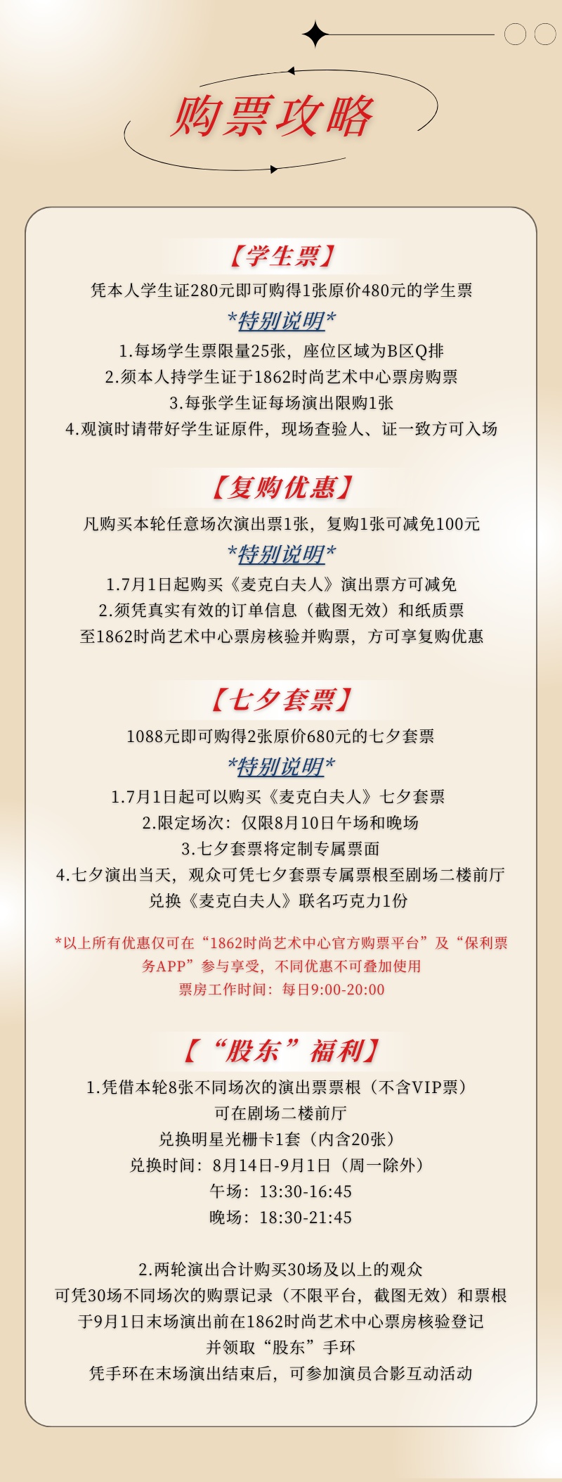 现有观剧体验名额8月28日(明晚)2位、8月29日(周四晚)4位