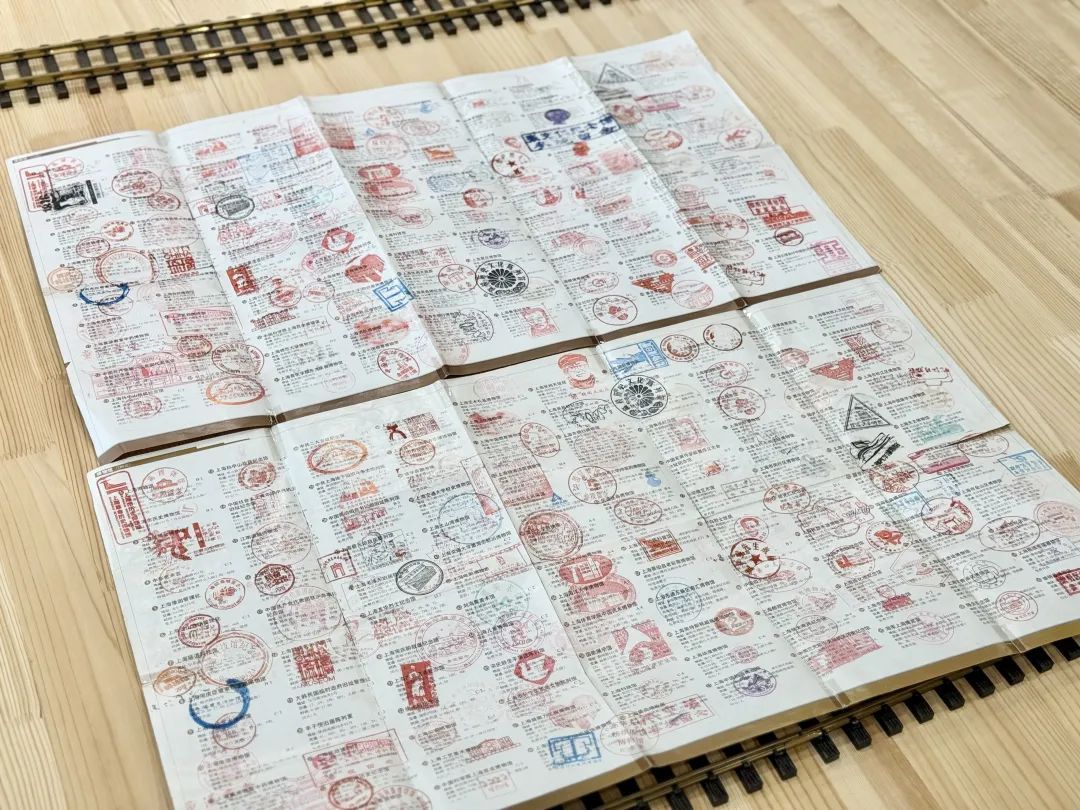 小嘉见到魏和平的时候,他正拿着“文化上海”博物馆导览图端详。那上面盖满了密密麻麻的印章,一眼望去十分壮观。魏和平介绍,这些章来自各地的博物馆、纪念馆,自己除了收集在导览图上,还另外准备了一本空白本。