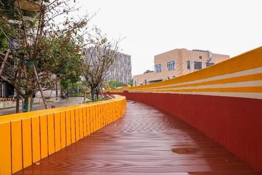 立体慢行系统建设过程中,注重保持与地面慢行系统的衔接畅通,并同步考虑了不同人群的通行需求,通过坡道、电梯等的设置,落实无障碍设计,充分体现人文关怀。