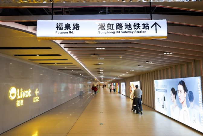 随着福泉路地下人行通道开通,标志着长宁区虹桥临空经济园区“七下八上”立体慢行勾连系统关键节点的打通,市民可从淞虹路地铁站经过福泉路地下通道直达上海荟聚,继续向西还可经此前已建成的地下勾连通道,抵达Sky Bridge HQ天会广场,将来还可连通北临空核心地区的建滔商业广场、旭辉虹桥国际等地标。同时,福泉路地下人行通道的开通有效缓解了工作日高峰时段福泉路(天山西路-金钟路)路面大量行人的通行压力。