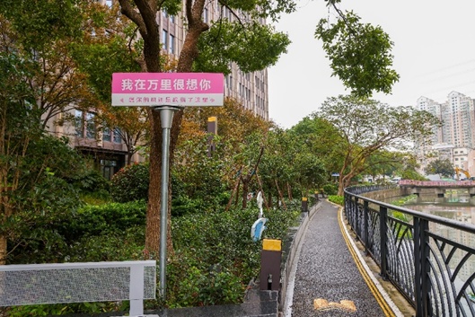 2023年7月,大场浦岸线贯通提升工程开工。通过铺设木塑栈道及沥青步道,实现了沿河慢行贯通,并与富平路、新村路、大华一路、真华路等人行道充分衔接,有效的延伸了万里社区的慢行网络。施工中,结合翻新绿植、新建廊架、设置景观小品和城市家具等方式,打造了可通行、可驻留、宜交往的滨水线性开放带,将活力多彩的沿河公共空间开放给居民,充分展现了万里沿河的生态活力。