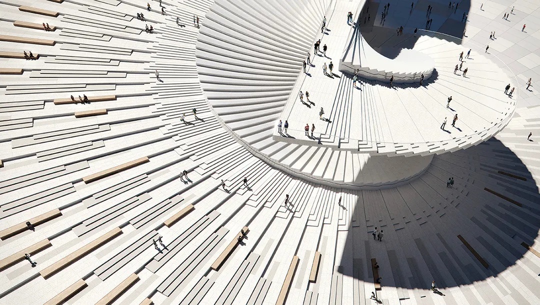 阶梯呈螺旋式上升,延伸至天空