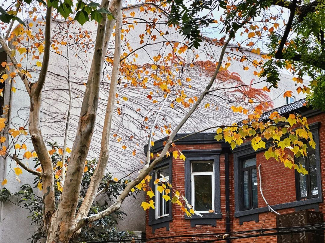 老洋房、咖啡店、杂货铺……这些是藏在市井弄堂里的浪漫生活。而眼下“不扫的落叶”,更是为其增添了一份“如约而至”的浪漫。