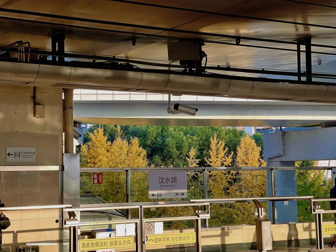 在汶水路地铁站2号口,银杏正逐渐换上金黄色的“华服”。也正因这片银杏林的映衬,该地铁站被市民亲切地称为“银杏车站”。