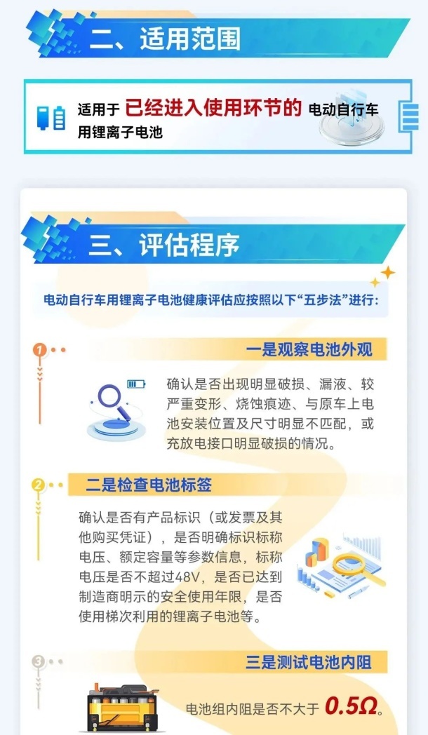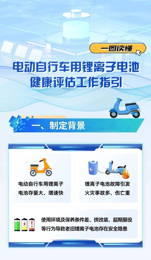 为降低电动自行车用锂离子电池安全风险,减少电动自行车火灾事故发生,切实保障人民群众生命财产安全,引导电动自行车行业安全健康发展,现就电动自行车用锂离子电池健康评估工作提出以下指引。