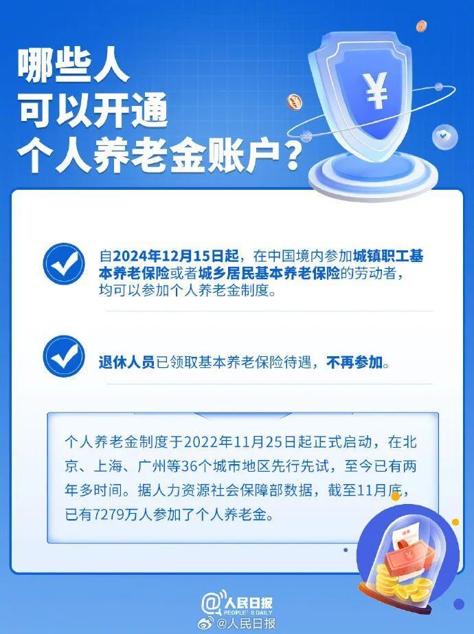 12月15日起,在中国境内参加城镇职工基本养老保险或者城乡居民基本养老保险的劳动者,均可以参加个人养老金制度。