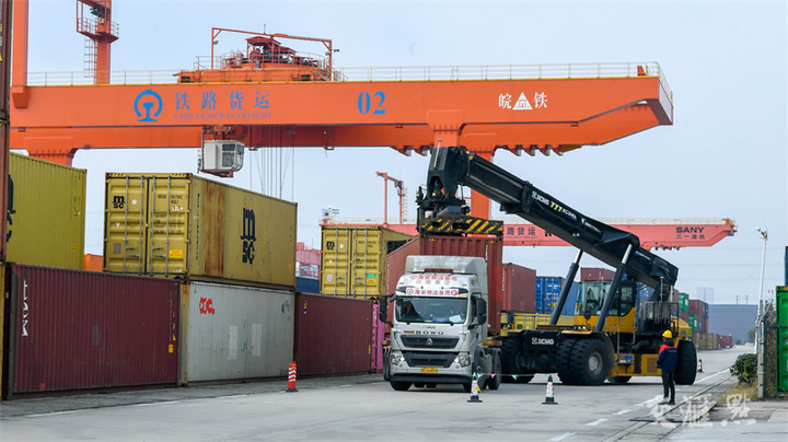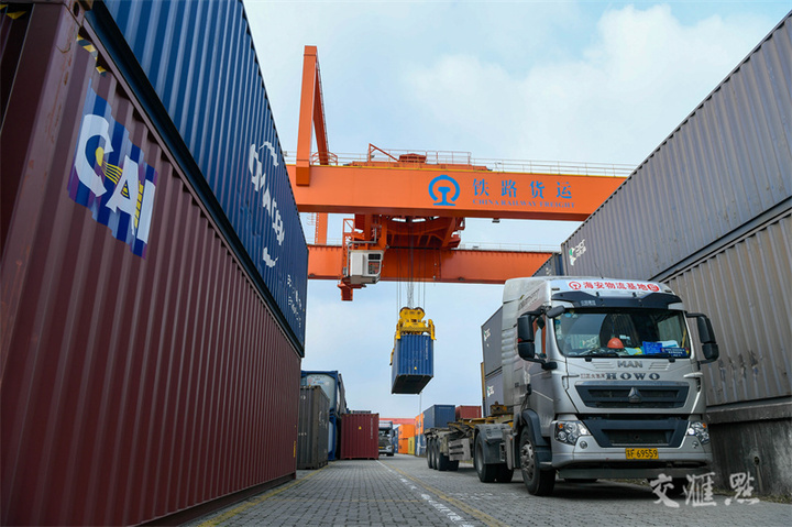 12月13日,上海铁路局海安物流基地一派繁忙景象,全力冲刺四季度目标任务。据了解,该物流基地基本实现年初的目标,预期全年实现货运240万吨,同比增长18%。 陆建宇/摄 视觉江苏网供图