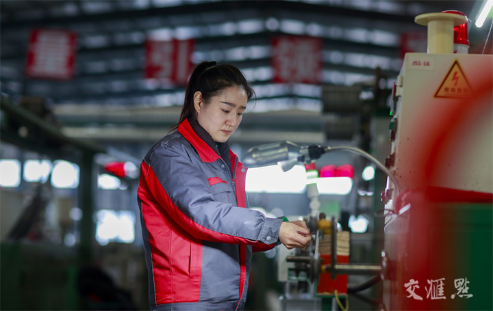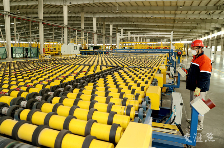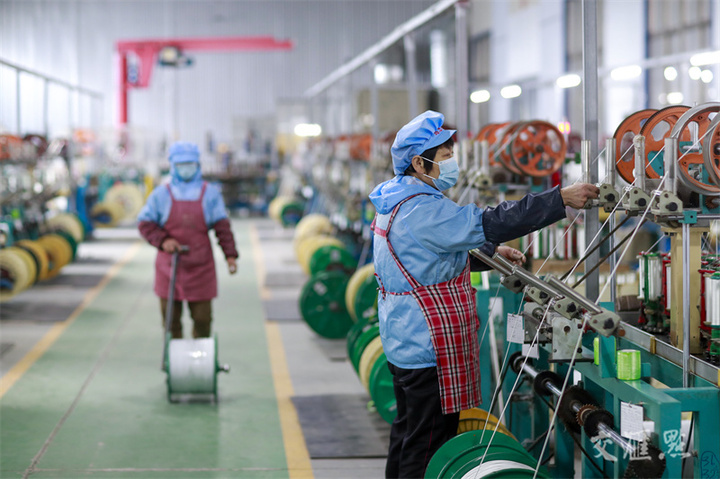 12月12日,兴化市戴南镇,工人在江苏银锡高温线缆有限公司生产车间作业。工人们铆足干劲抓生产、赶订单,全力冲刺全年目标任务。周社根/摄 视觉江苏网供图