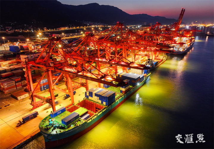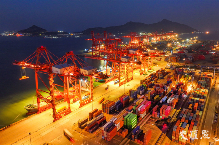 12月14日晚,连云港港集装箱码头灯火辉煌,货物装卸繁忙有序。临近年末,连云港港瞄准年度目标任务,持续提升港口集疏运水平,多措并举加快货物装卸转运效率,全力冲刺港口全年目标任务,确保外贸集装箱吞吐量与出口量再创新高。王健民 张伟/摄 视觉江苏网供图