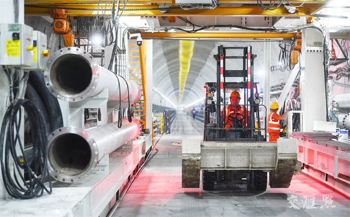 12月15日,由中铁十四局承建的南京地铁4号线二期过江隧道“新征程号”盾构机已掘进至575环,掘进里程已完成总线路三分之一。目前,“新征程号”盾构机正在长江潜洲段30多米深的江底,以每天约20米的速度向前推进。新华日报·交汇点记者 邵丹 通讯员 李梦梦/摄