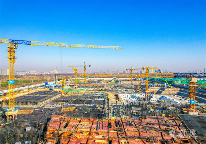 12月16日,江苏省人民医院宿迁医院项目建设现场一派热火朝天的建设景象。据了解,该项目占地面积约189亩,总建筑面积21.31万平方米,新院区规划编制床位1000张,主要建设门诊医技楼、住院楼、科研楼等。王帅甫/摄 视觉江苏网供图