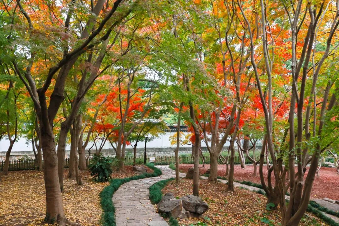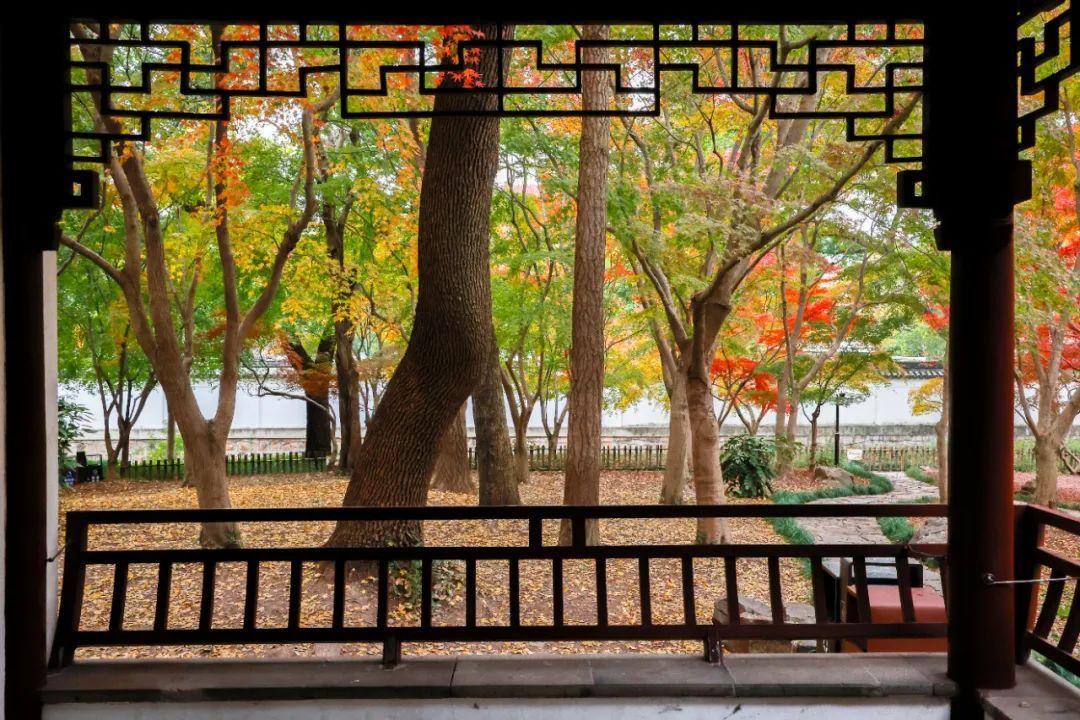 此刻,这片园子仿佛被施了魔法般染上了五彩缤纷的色彩,每一片叶子都是大自然的杰作。它们在风中摇曳生姿,为这座宁静的庭院增添诗情画意。