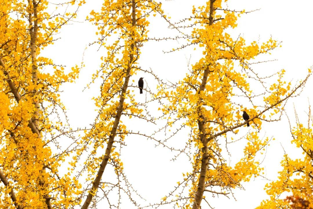 除了枫叶,银杏也已是一树灿烂,满目金黄。