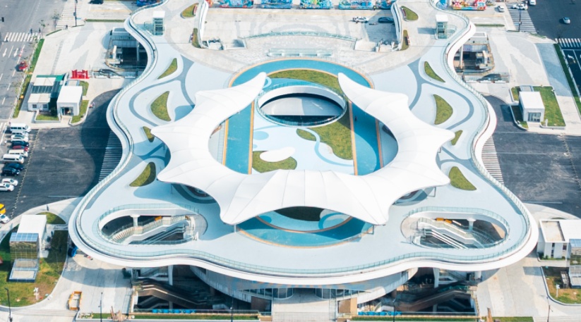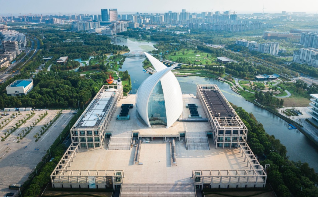 其建筑造型汲取上海市花“白玉兰花”意象,顺其形,取其优美的弧线,为滴水湖畔增添了一座滨湖门户地标。