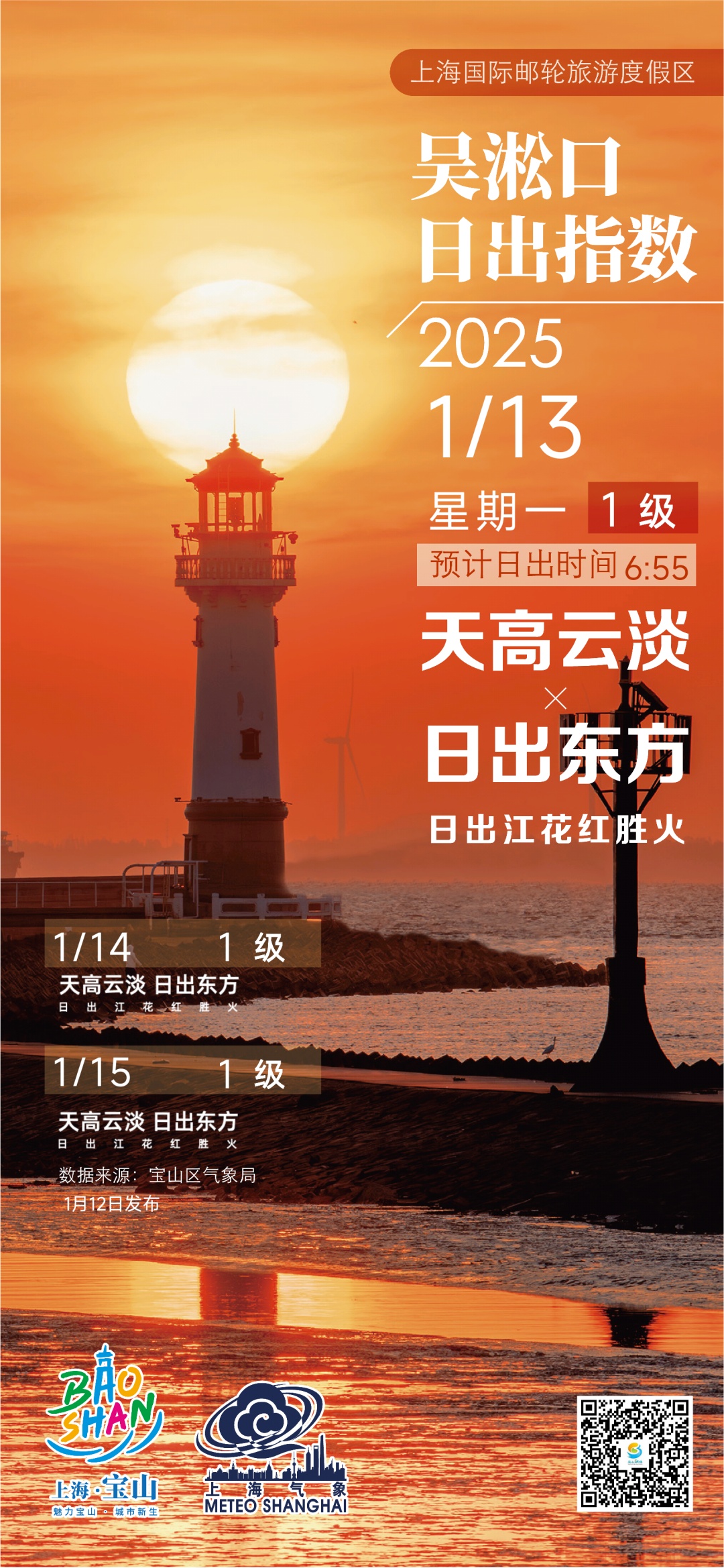 【吴淞口日出指数】1月13日1级 天高云淡×日出东方