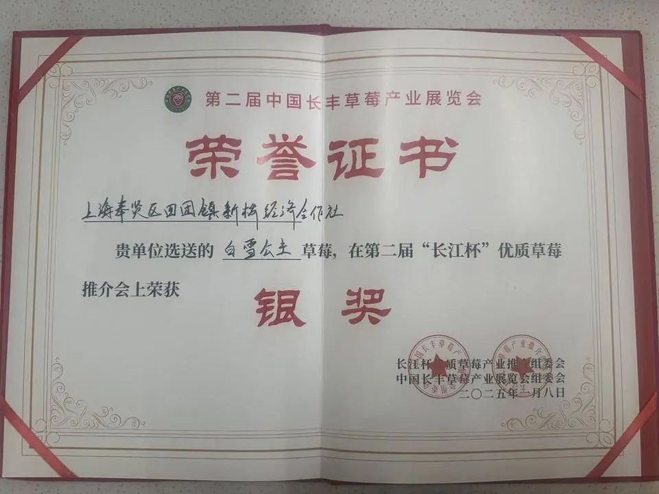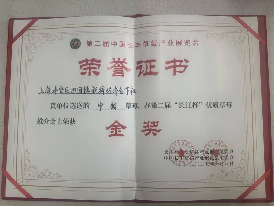 近日,第二届中国长丰产业展览会、“长江杯”优质草莓推介会在安徽省长丰县举办,全国各草莓种植相关部门、农资企业、科研院所、种植大户齐聚一堂。其中,来自四团镇新桥经济合作社的“申馨” 草莓荣获金奖。