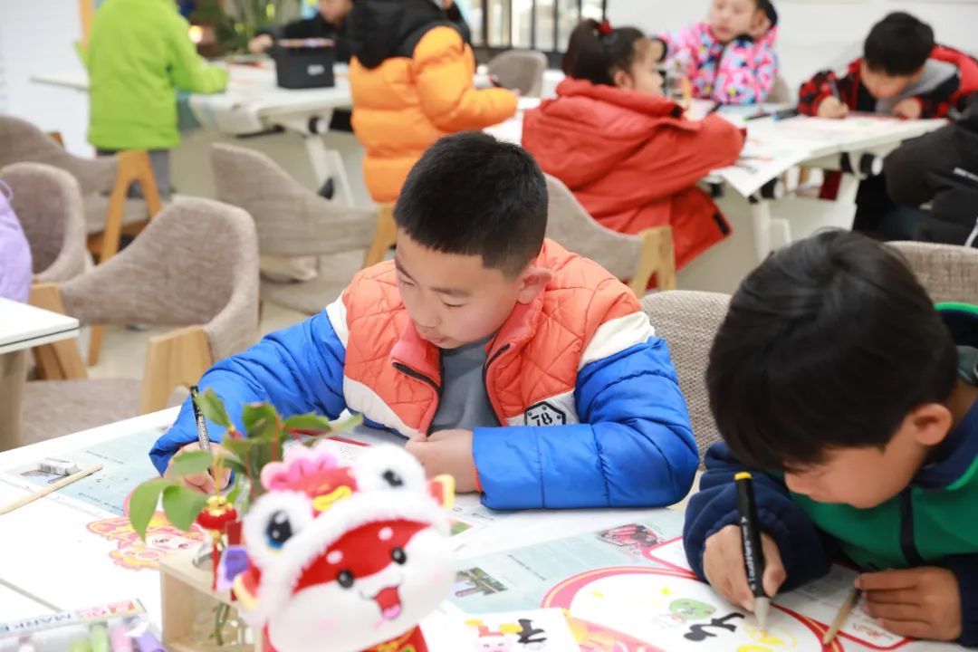 上午9点左右,小朋友们在家长的带领下陆续来到寒假营,正式开始首个课程——“画蛇添福”美术课堂。现场,在老师的指导下,小朋友们各自用画笔创作出了一幅幅生动可爱的蛇年画作,定制专属自己的新年日历,现场欢声笑语不断、新春氛围浓厚。