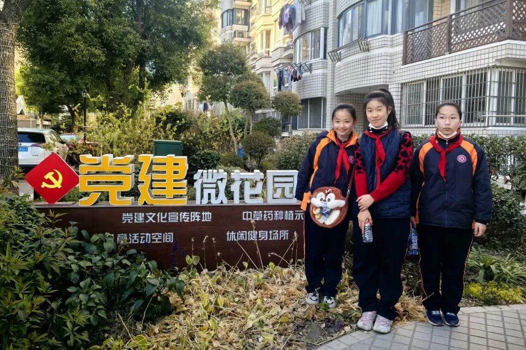 在一街之隔的华国家园,学生们漫步在小区新改造的党建微花园中,聆听徐老师的介绍,共同欣赏这片“新”与“旧”交替的空间。他们了解到,这座党建微花园本是一片闲置空地,杂草丛生,后来在“四百”大走访中被挖潜盘活、“腾笼换鸟”,如今已经成为居民们“家门口的好去处”。