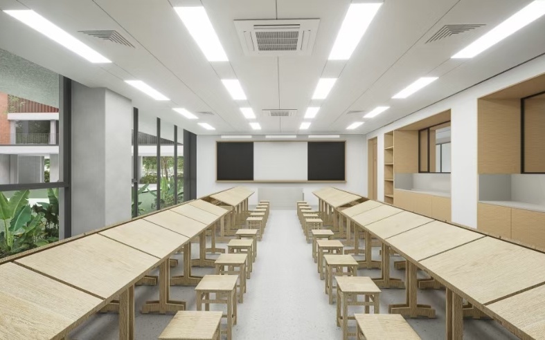 从学校设计效果图可以看到,现代化的教学楼、先进的实验室、宽敞的图书馆和一流的体育设施一应俱全,为学生营造了舒适、便捷且充满活力的学习环境。在课程设置方面,学校精心规划课程体系,确保初中与高中教育无缝衔接,为学生留出更多发展个人兴趣的时间和空间。学校以课程化推动学生创新素养培育,打造科技教育特色,着重培养学生的数理逻辑、工程思维、探究精神和创新能力。除了重点设计人工智能等校本特色课程外,还通过专题讲座、选修课和专项课程,充分激发学生的科技创新潜能。同时,学校课程涵盖科技、人文、艺体等多个领域,秉持多元发展、文理并重的理念,支持学生个性化成长与生涯规划,助力培养全面发展、具有创新素养的未来人才。