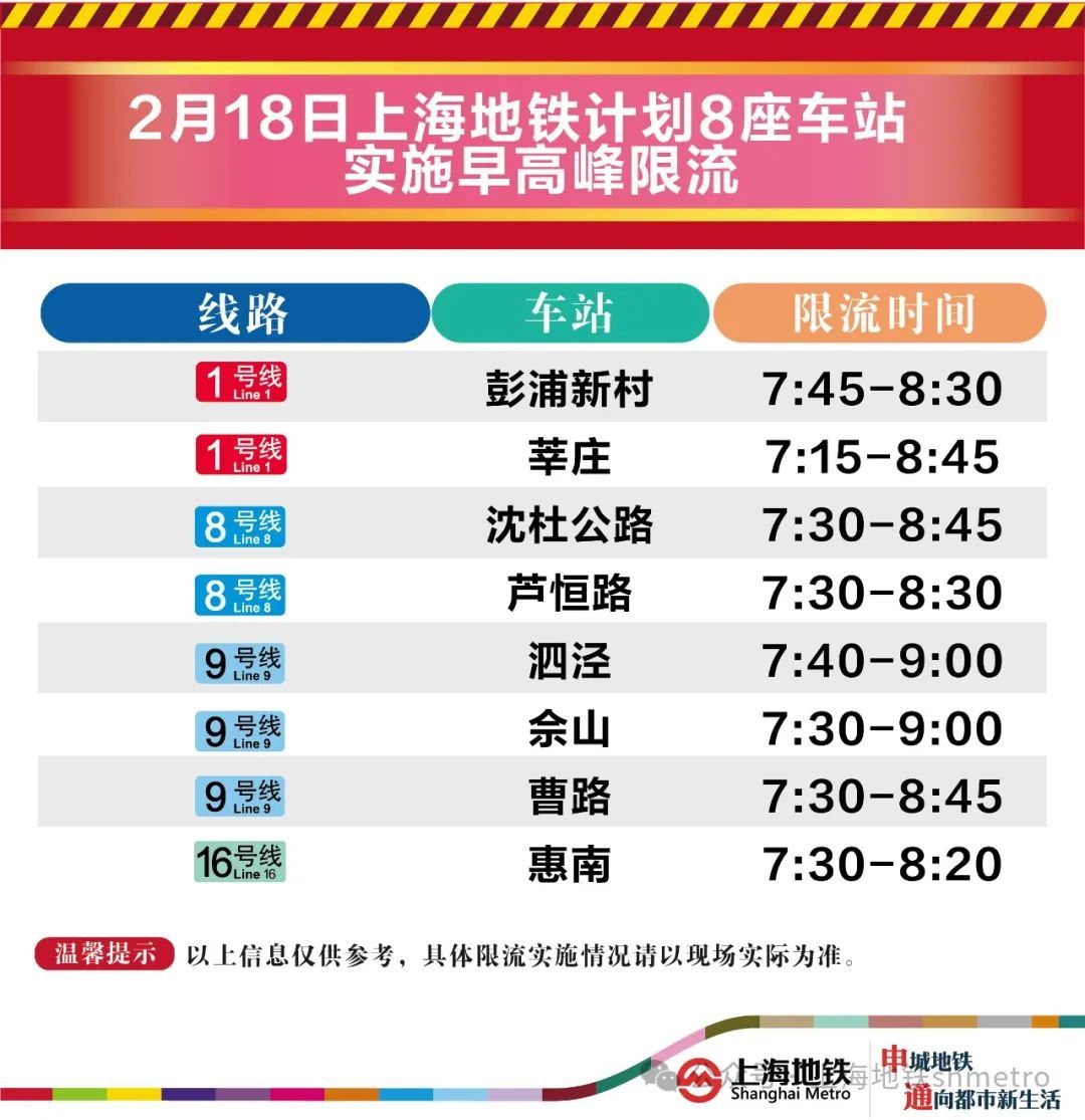 2月18日早高峰泗泾、佘山等8座地铁站计划限流