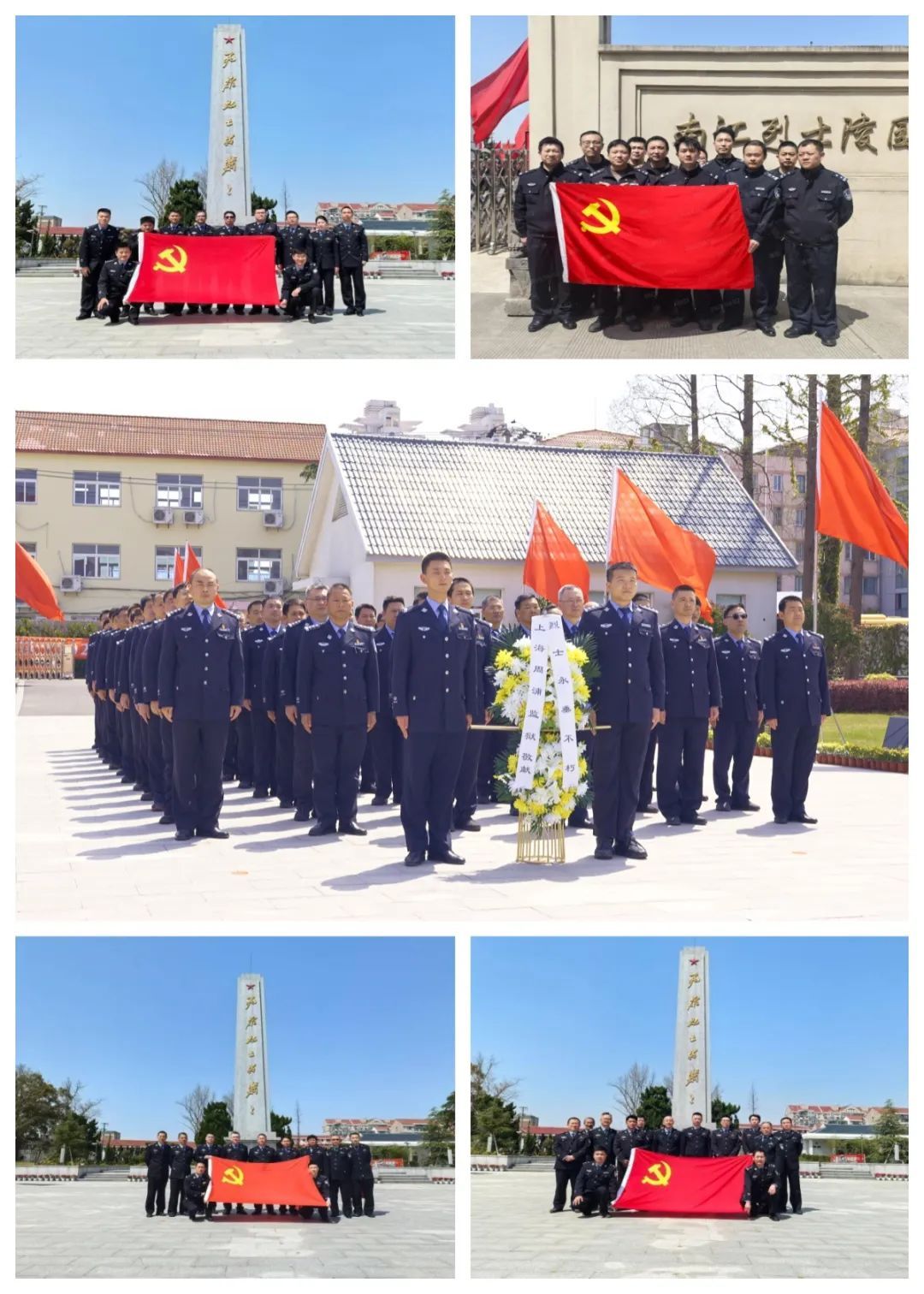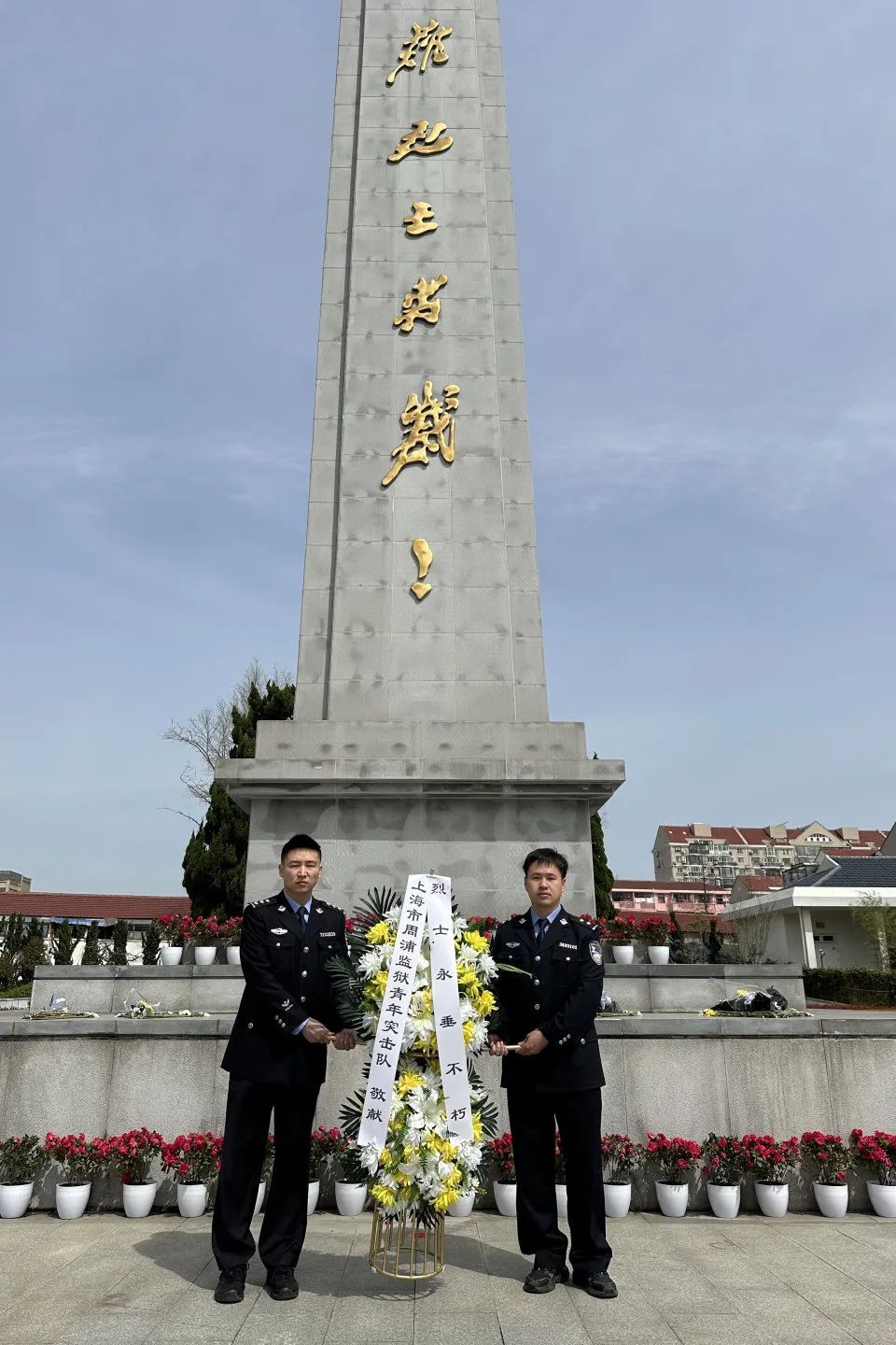 在南汇烈士陵园庄严肃穆的革命烈士纪念碑前,80余名民警整齐列队,两名民警代表向烈士纪念碑献花篮。民警参观了烈士纪念馆,透过珍贵的历史照片、文献资料,重温了革命先烈为人民解放献身的英勇事迹。