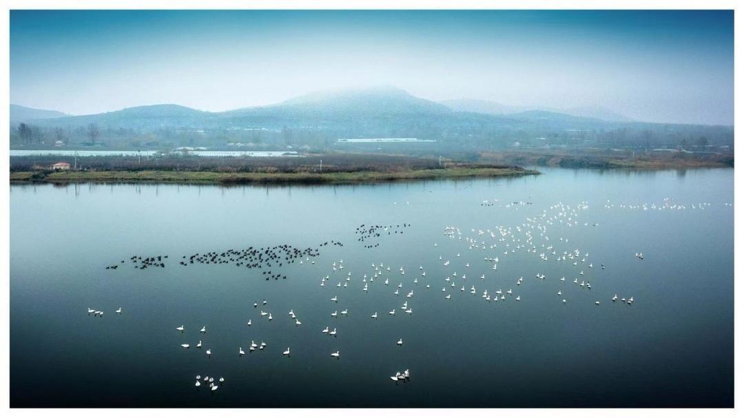 当然,九龙湖的生态之美远不止于花海。2022年11月,上千只候鸟翩然而至,天鹅、鸬鹚、大雁同框出现;2025年3月,27只北迁的白天鹅再次飞越千山万水打卡昌乐九龙湖,这群“远方来客”,在水面上或翔集嬉戏,或翩跹起舞,为这片美丽的土地增添了一抹灵动的色彩,构成了一幅清丽隽美的画卷。