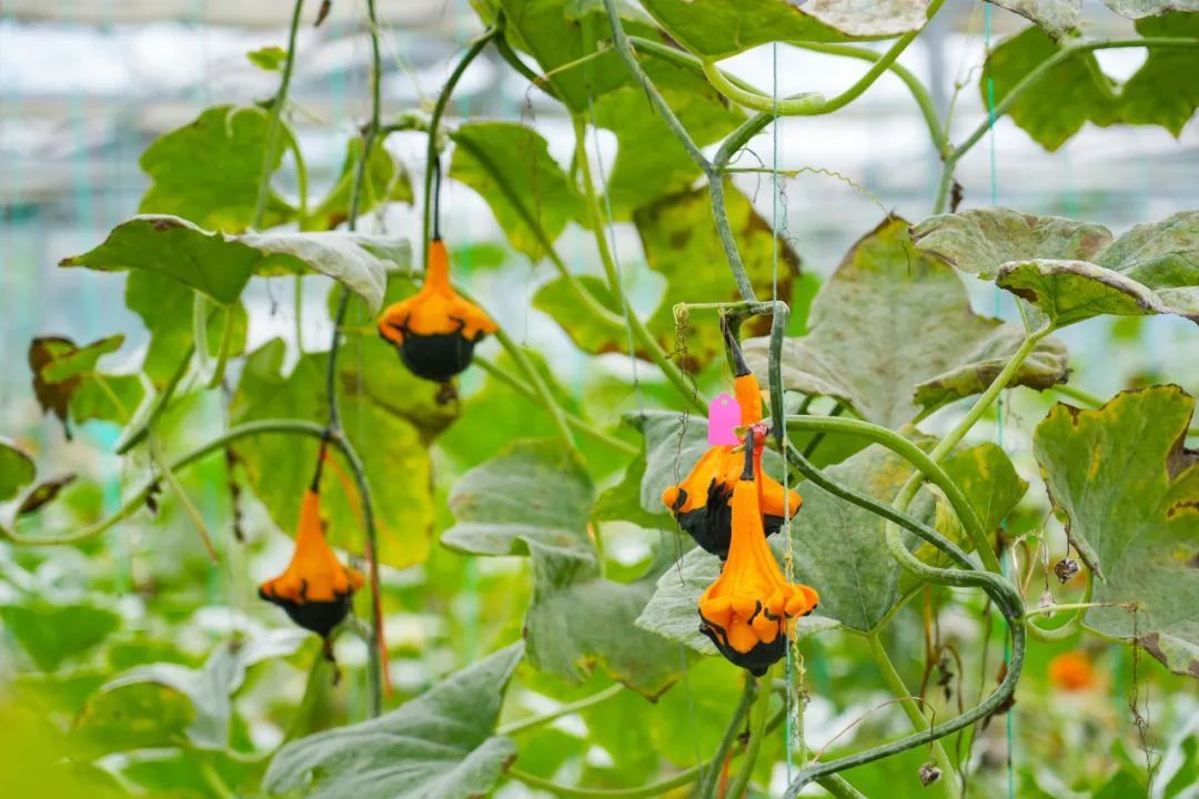 在品种培育方面,基地形成了多元化种植体系,既有适合观赏的造型南瓜,也有专供食用的优质品种,品类多达数千种。南瓜的个头差异显著,最大的单果重量突破70公斤,最小的仅有300克,充分展现出丰富的品种特色。