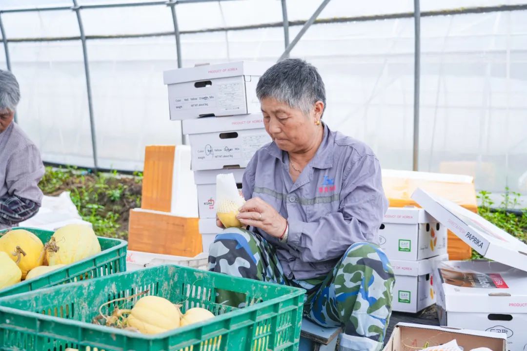据企业相关负责人唐正军介绍,基地内南瓜亩产可达三千至四千斤,通过“叮咚买菜”“盒马鲜生”等电商平台将产品销往全国各地,目前每天出货量约15吨,预计全年总产值可达1.2亿元。