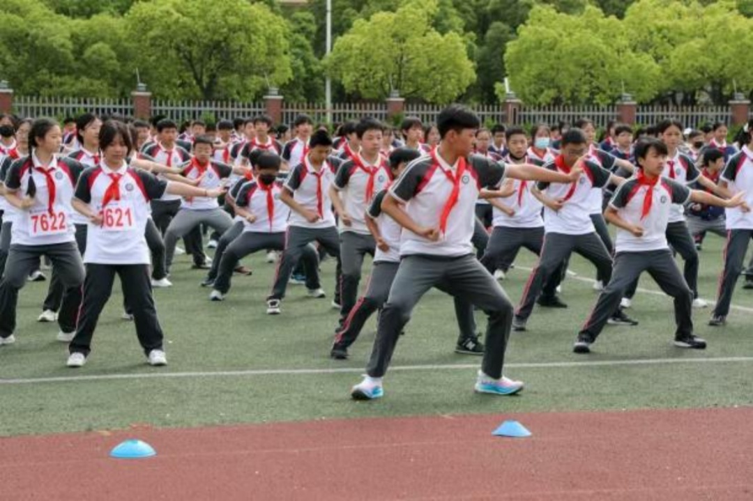 “课程是基础,赛事是动力。”贾兴文表示,为了确保全年赛事贯穿和学生100%参与,罗店二中在课程设置上也是下足了功夫。学校遵循初中体育多样化的原则,将田径、足、篮、排、跳踢、武术以及一些民族民间传统体育运动都纳入必教必学项目,体育赛事贯穿整个学年。
