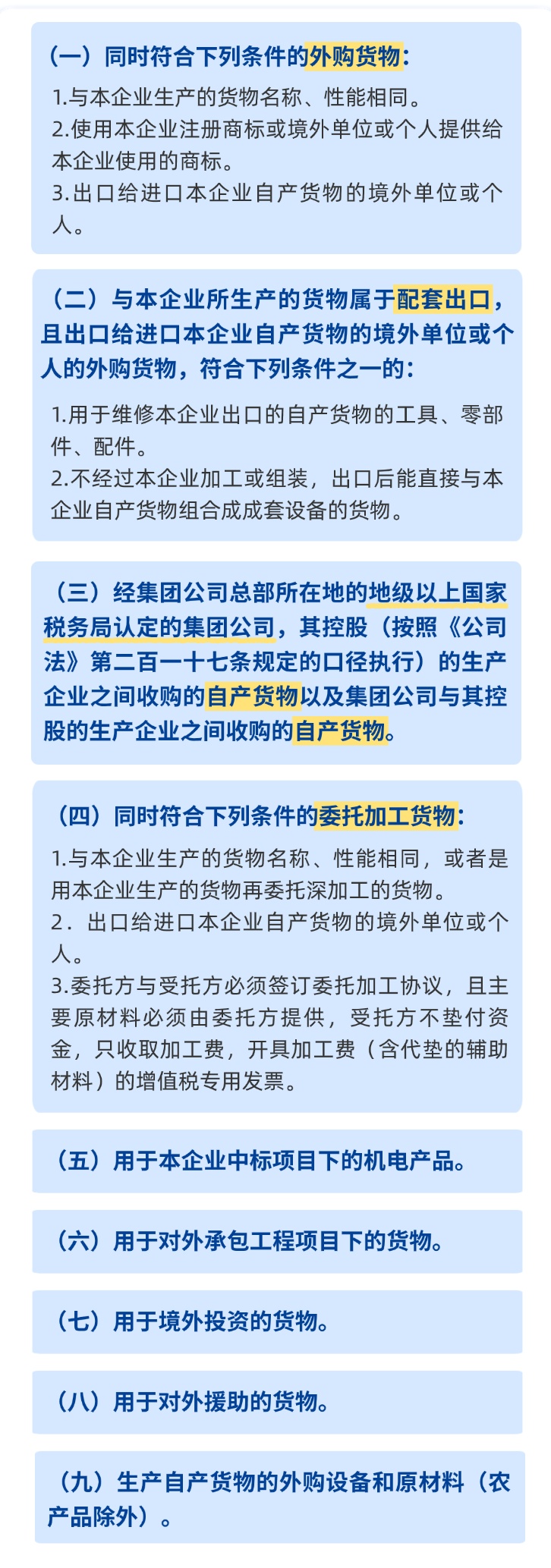 (五)外购出口的货物与本企业自产货物同类型或具有相关性。