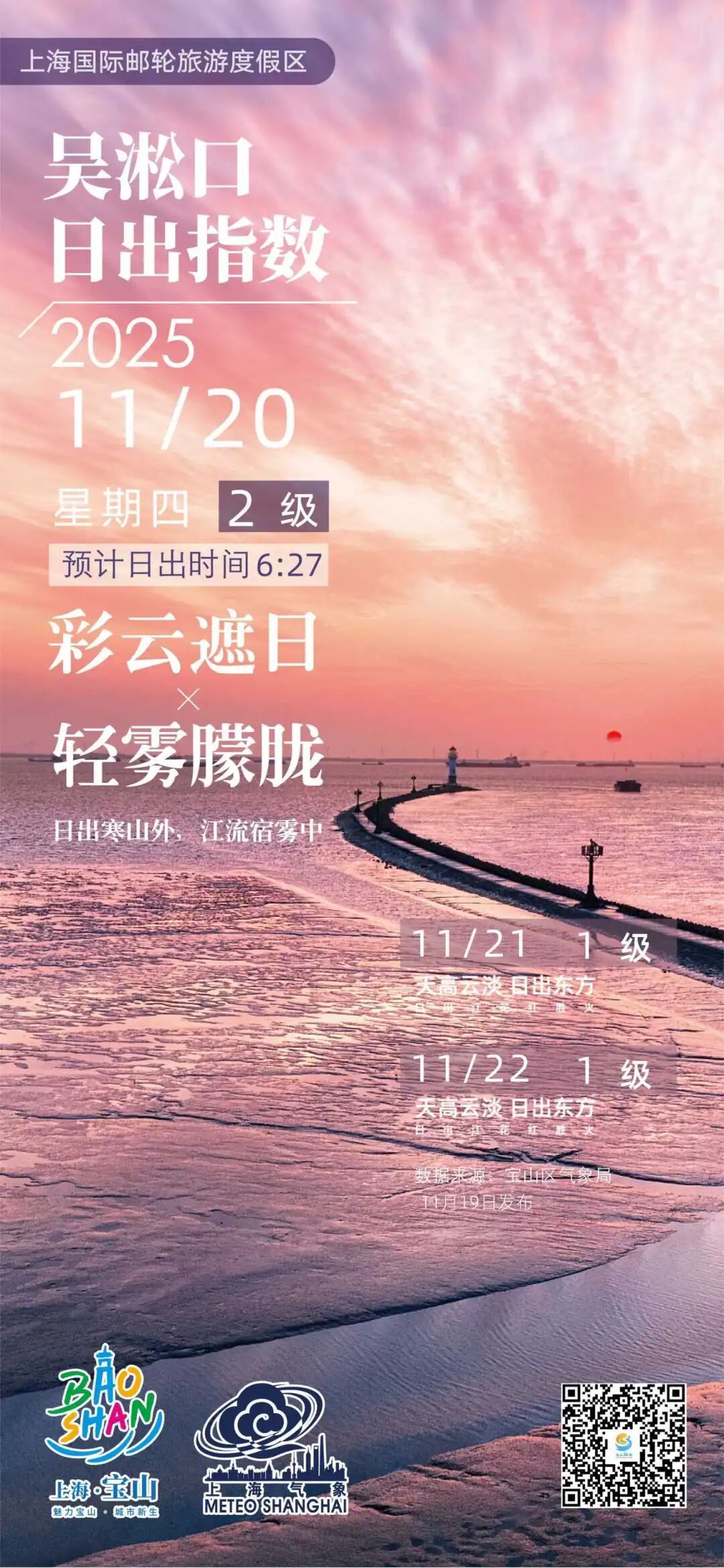 【吴淞口日出指数】11月20日2级 彩云遮日×轻雾朦胧