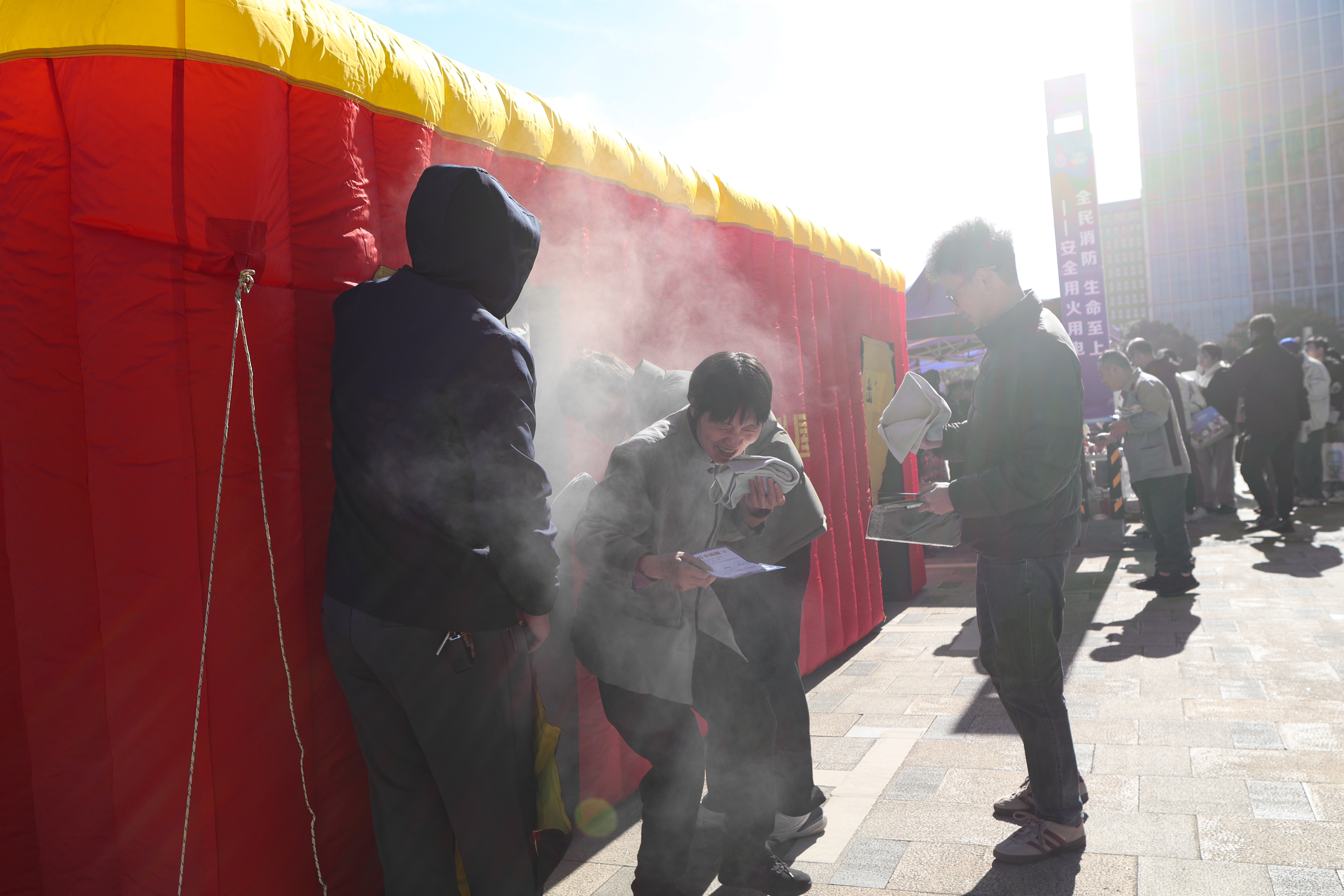 11月18日,一场以“全民消防、生命至上——安全用火用电”为主题的119消防宣传月主题活动在临港松江科技城举行。市民们一边逛“消防融入生活”主题创意市集,一边通过互动游戏沉浸式学习消防安全知识,并在模拟火灾现场逃生和电动车真火灭火的沉浸式体验中强化消防安全意识,筑牢安全防线。