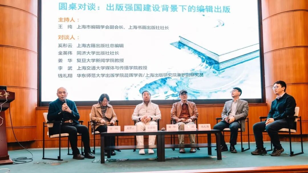 圆桌对谈环节由上海市编辑学会副会长、上海书画出版社社长王纯主持,上海古籍出版社总编辑奚彤云,同济大学出版社社长金英伟,复旦大学新闻学院教授姜华,上海交通大学媒体与传播学院教授李武,华东师范大学出版学院晨晖学者、上海出版研究院兼职副研究员钱礼翔等专家学者围绕“出版强国建设中的编辑主体性”展开思想交锋。讨论聚焦编辑核心能力重塑、融合出版痛点破解、学科教育体系优化、全民阅读推广创新等关键议题,提出需通过制度创新、技术赋能与生态协同破除发展壁垒,切实呼应党的二十届四中全会关于全面深化改革、推动高质量发展战略部署,展现了上海出版人开阔的视野、敏锐的洞察和务实的思考。