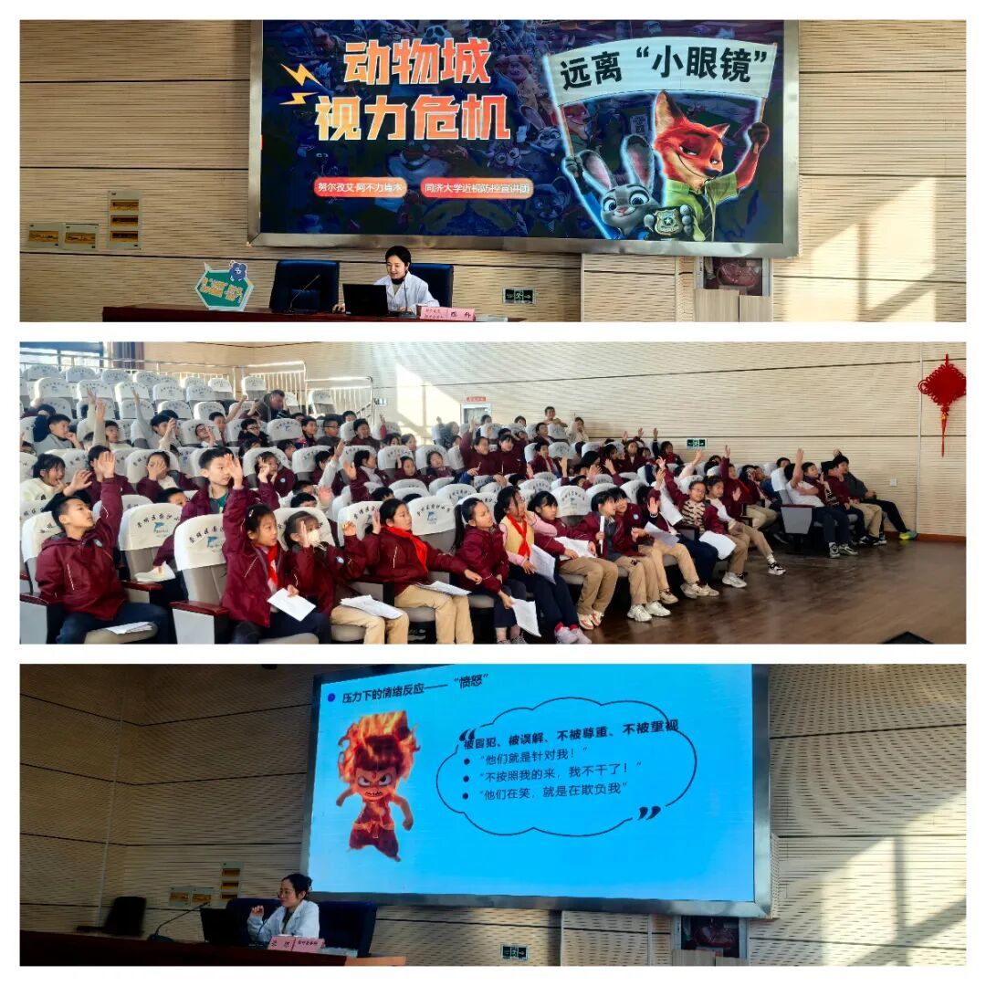 本次活动围绕学生群体常见的健康问题——“四小防治”展开,安排了健康知识讲座与体格检查两大环节。在健康知识讲座部分,针对“小眼镜”和“小焦虑”问题,分别开展了专题宣讲:在“小眼镜”防治方面,特邀同济大学近视防控宣讲团成员以同学们喜爱的动画作品为切入点,生动讲解了近视的成因、危害与科学的防治方法,引导学生们树立主动爱眼护眼的意识;在“小焦虑”疏导方面,则由同济医院精神医学科心理治疗师主讲,同样结合流行的动画形象,为同学们解析压力来源,并传授了实用有效的情绪管理与心理调适技巧,帮助大家更好地应对日常学习和生活中的焦虑情绪。