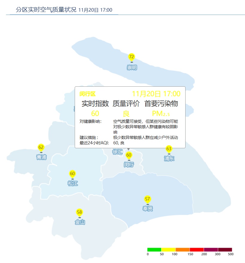 闵行区AQI为60,良。