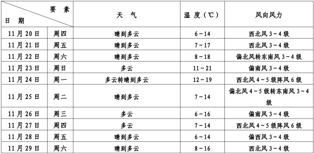明天还是阳光满满的一天,晴到多云的天气,继续小幅回暖,全天气温7—18℃,西北风3—4级。除了早晚冷,注意保暖外,空气持续干燥,相对湿度在70%—25%。