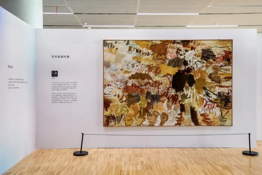 另一幅是当代艺术家黄渊青为上海图书馆专门创作的油画作品《2025-7》。黄渊青的作品由线条引导,同时呈现丰富而沉郁的色彩,从而产生不断叠加的肌理。黄渊青率性的绘画语言,灵动,稚拙而有意外,逐渐呈现在时间中潜行的知性韵律。与创作书法的规律相反,他作画很少一气呵成,个别作品经历数月甚至数年才最终完成,但也正因如此,经过深思熟虑和时间的沉淀,黄渊青的作品也更为历久弥新。