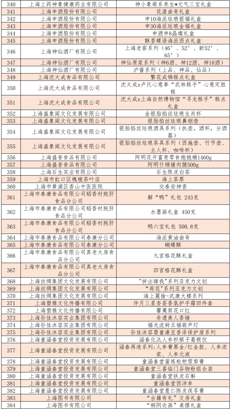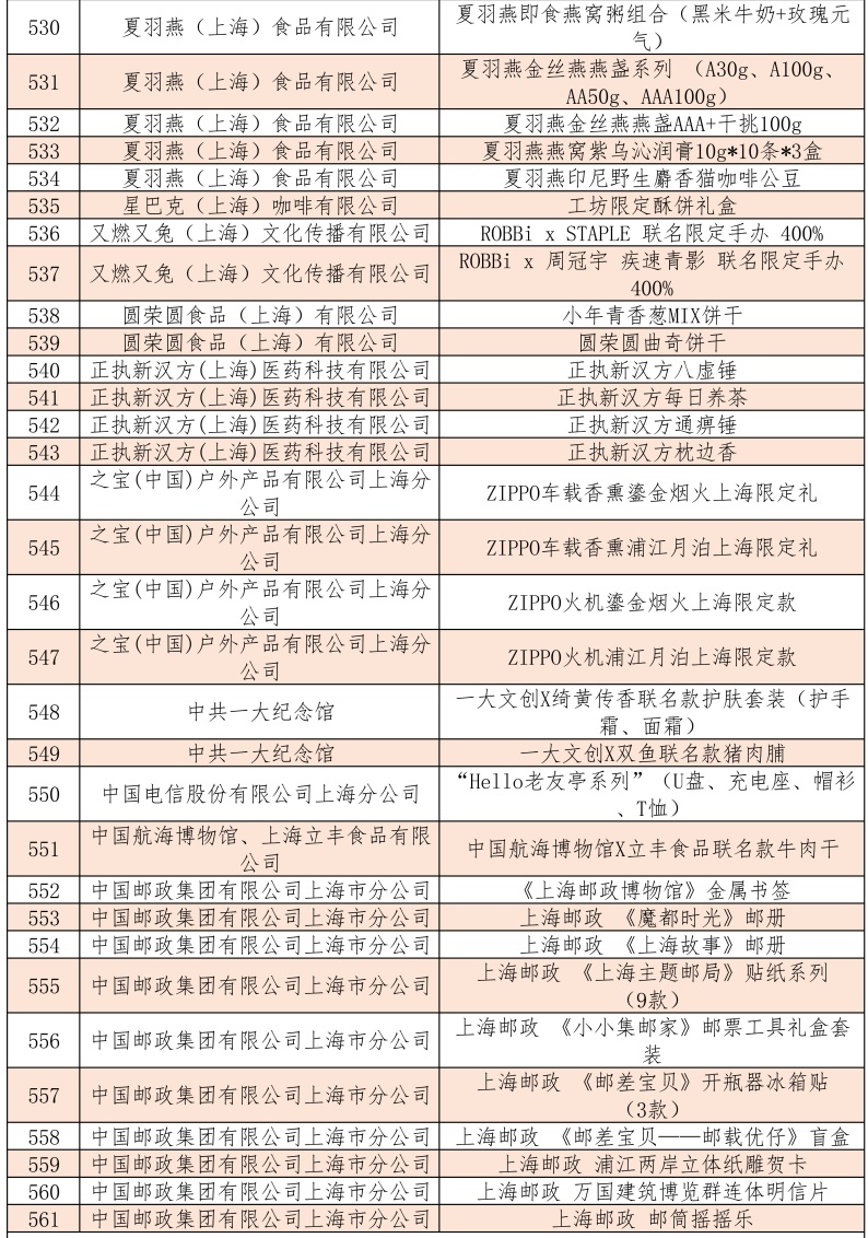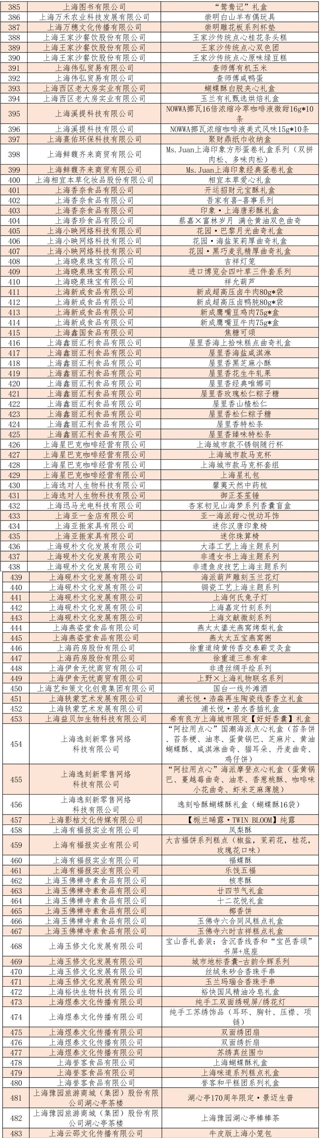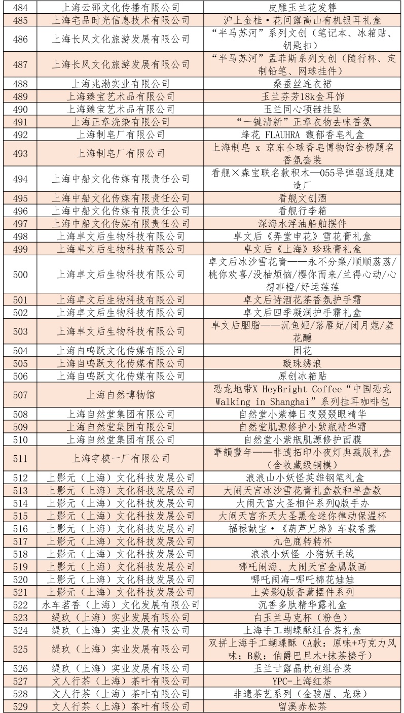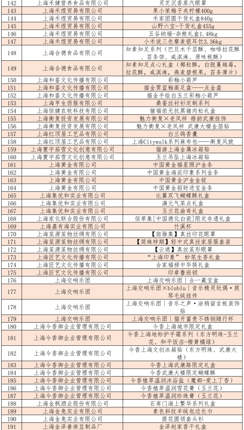 市文化旅游局介绍,在其指导下,上海市商业联合会、上海市旅游行业协会联合开展了2025年“上海礼物”品牌商品评选和认定。经资质查询、企业征信、专家认证和领导小组评审,561件商品入选2025年“上海礼物”品牌商品。一起来看↓ 上图为部分2025年“上海礼物” 根据《“上海礼物”商品评选及标志标识管理办法(修订稿)》第八条第一款,“经评审获‘上海礼物’认定的品牌商品自公布之日起有效期为叁年,有效期过后企业须重新申报”,2022年“上海礼物”品牌商品自本名单公布之日起废止。 2025上海礼物品牌商品入选名单 (按拼音顺序)