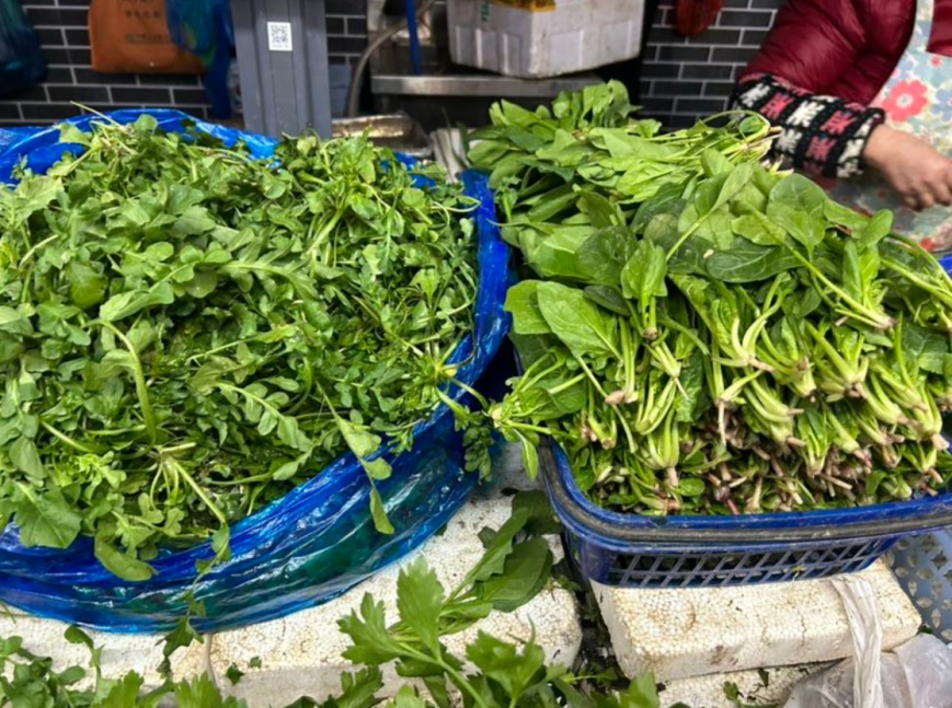 随着气温下降,乡村田间的各类绿叶菜经过霜打,口感愈发清甜软糯。不仅农户自留地里的收成喜人,菜市场上的本地霜打菜也格外受消费者青睐,成为秋冬餐桌的“香饽饽”。