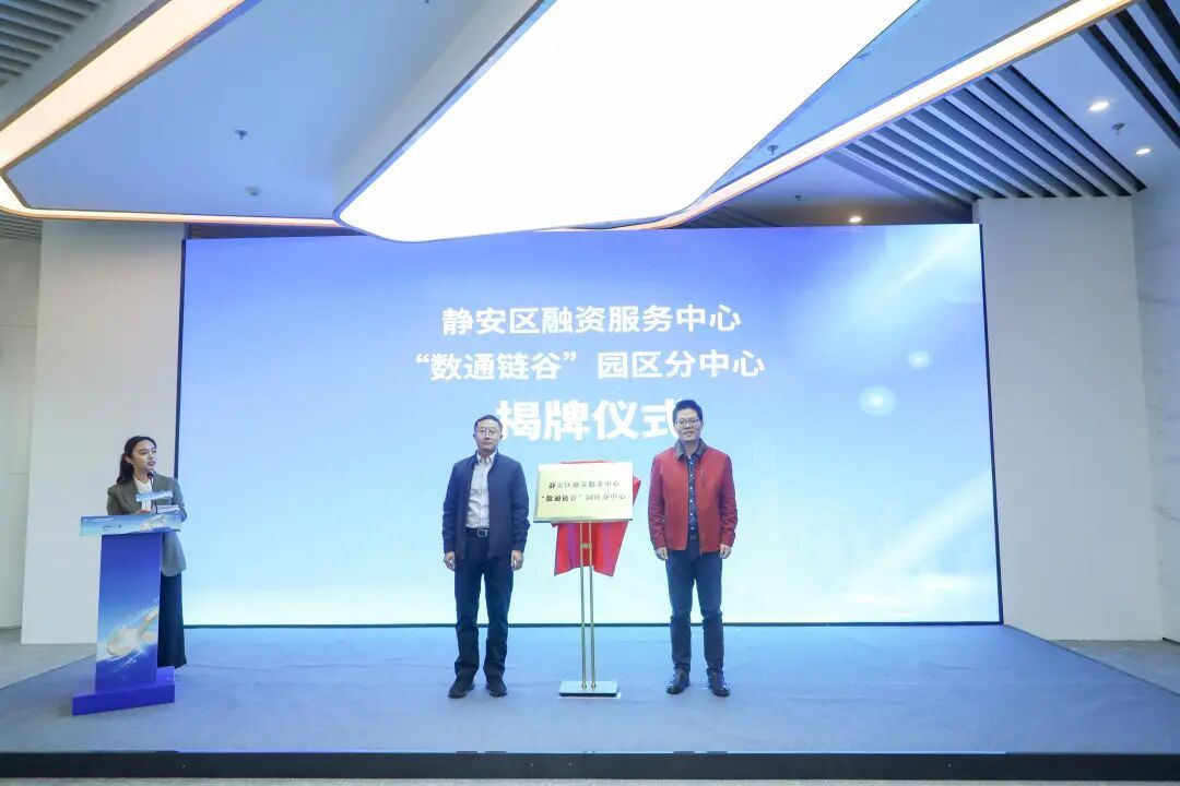 市委金融办普惠处副处长于敏波与静安区投资促进办公室副主任张锴为静安区融资服务中心“数通链谷”园区分中心揭牌