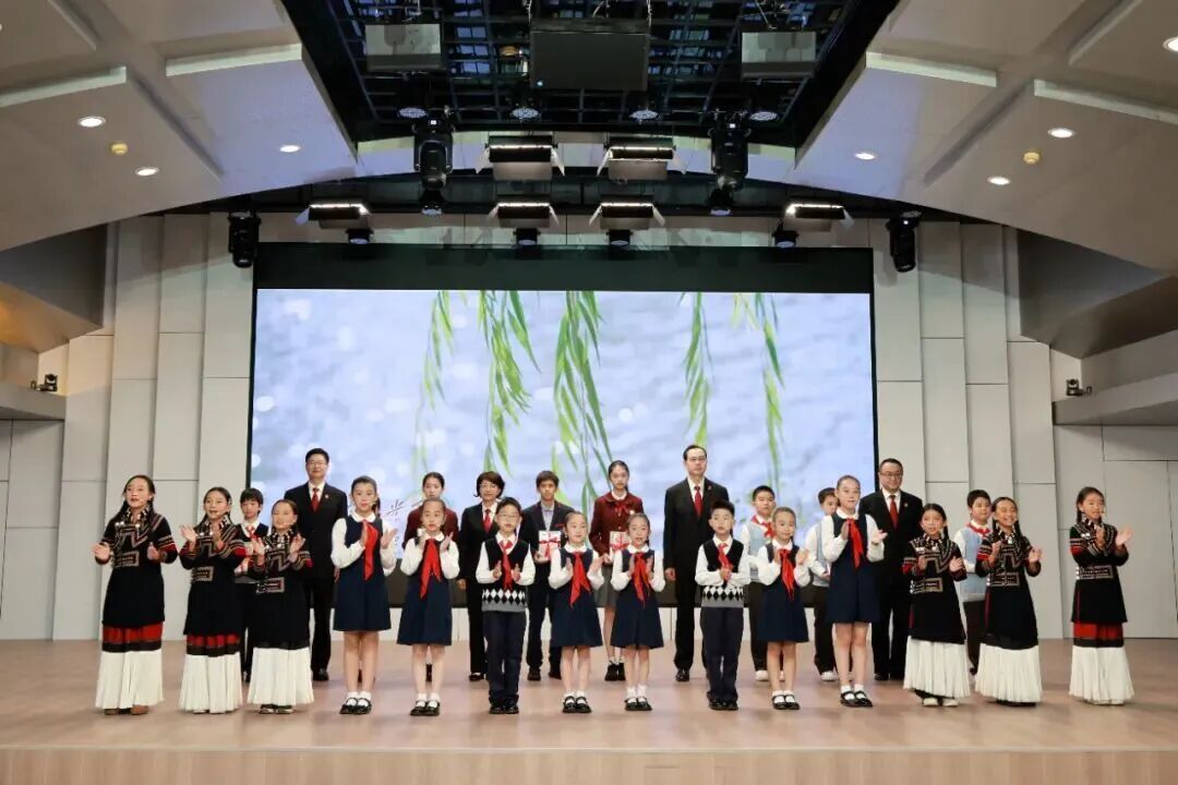 作为该系列活动的第六场,本场活动在内容和形式上均有创新突破,孩子们不仅是法治课堂的聆听者,更是参与者、表达者。在“法治向导”全国人大代表盛弘、上海市长宁区人民法院院长徐世亮、B站UP主欣小萌的带领下,孩子们进行了一场从网络到现实,从法治宣传到法治参与的“法治漫游”。围绕网络内容科学分级、网络暴力应对策略、AI等网络智能产品的规范使用等议题,在场学生、家长、法官、专家、互联网企业代表等展开热烈交流。大凉山妞妞合唱团与上海市长宁区适存小学学生代表共同演唱未成年人普法主题曲《脊背上的光》,嘉宾们还向师生赠送了《重返庭审现场·少年法庭》《以案为鉴——未成年人网络保护安全岛(学生版)》《以案为鉴——未成年人网络保护提要(家长版)》《青少年法治教育法律法规》《青少年法治教育案例课堂》《未成年人保护法百问百答》等普法读物,将现场气氛推向高潮。