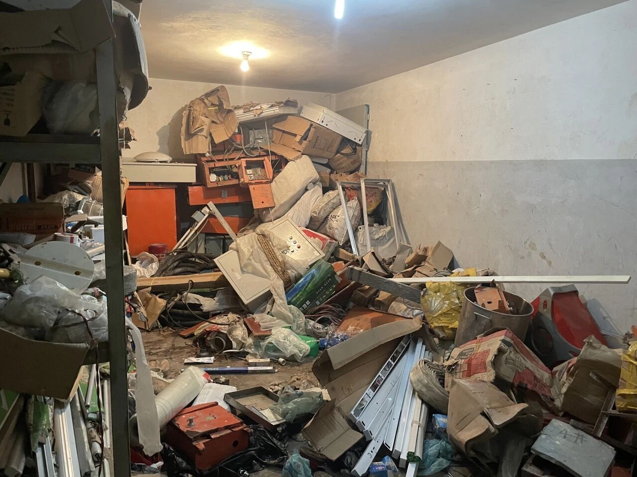 像远大空调这样的出租空间,永昌大厦地下有15间、金昌大厦地下有10间。其中一户租户让居委会最为担心,在八十余平方米的房间中堆满木制雕像、酒品等易燃品,还24小时开灯,一旦引发火情,后果不堪设想。经过几轮协商,这户租户最终同意搬离,光搬东西就用了近半个月,前后货车来回搬运超20次。