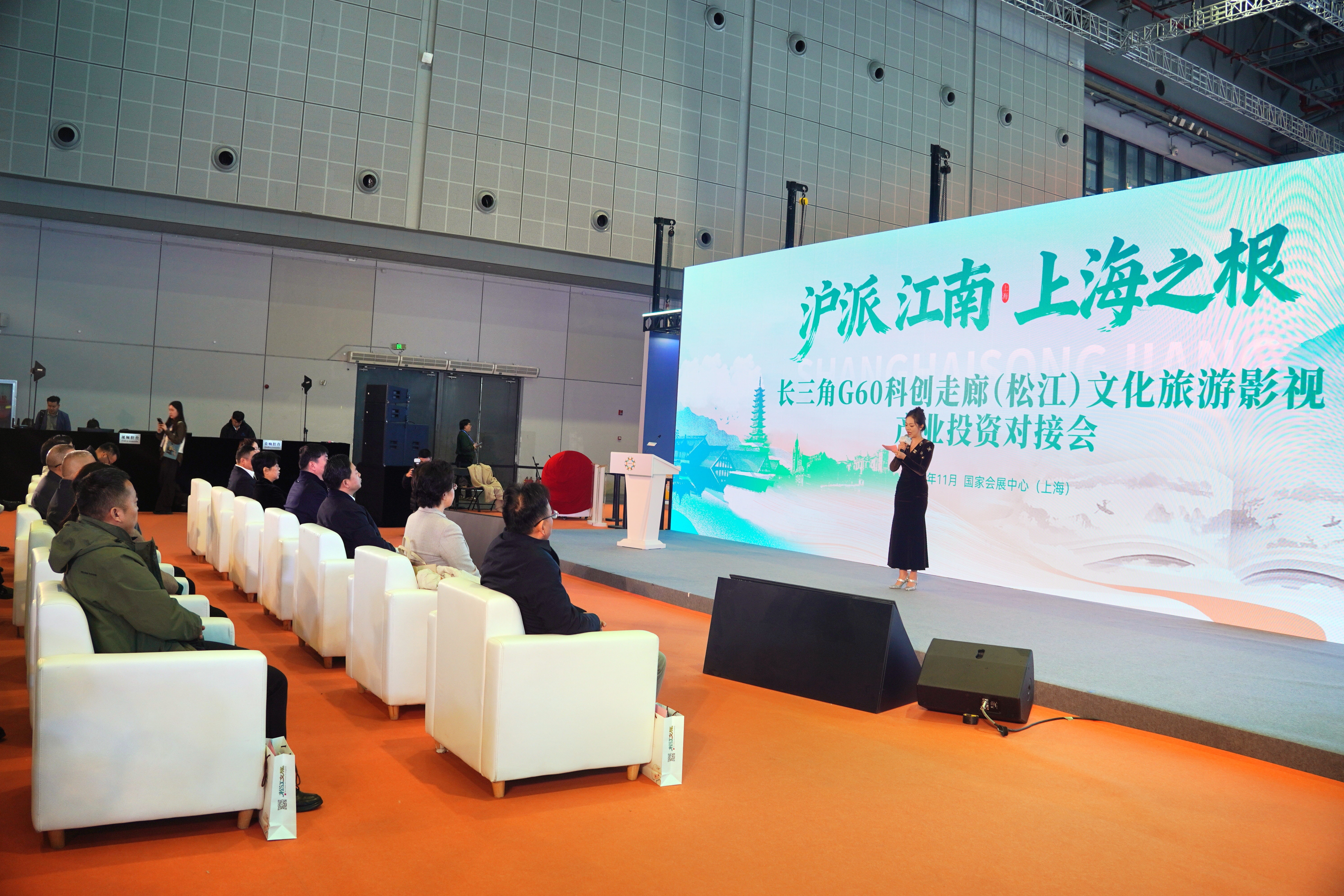 11月21日,第六届长三角国际文化产业博览会——“沪派江南·上海之根”长三角G60科创走廊(松江)文化旅游影视产业投资对接会在上海国家会展中心举行。来自G60科创走廊九城市的文旅部门、重点企业、金融机构及媒体代表齐聚一堂,共商融合发展新机遇,共绘区域协同新蓝图。区委常委、宣传部部长顾建斌,副区长叶文娣出席活动。