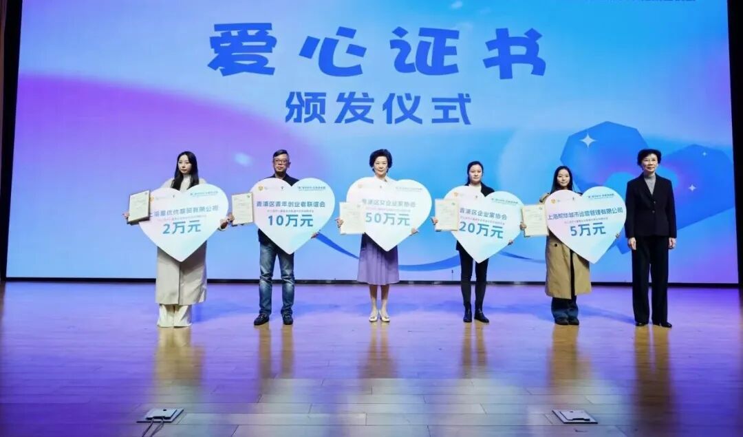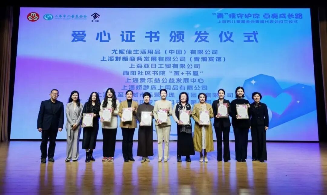 活动现场,青浦区女企业家协会、青浦区企业家协会、青浦区青年创业者联谊会、爱心企业代表们纷纷慷慨解囊,爱心捐款超100万元,用实际行动诠释着企业的社会责任与大爱精神。杨定华为爱心企业颁发捐赠证书,黄绮代表上海市儿童基金会接受爱心捐赠。张庆玲、刘琪共同为上海市儿童基金会青浦代表处揭牌。 爱心不分大小,善举温暖人心。在青浦儿童事业发展的道路上,涌现出一批默默奉献的爱心榜样,他们用实际行动为孩子们撑起一片蓝天。上海市妇联二级巡视员顾秀娟、上海市儿童基金会副理事长兼秘书长余伟星、上海市儿童基金会青浦代表处主任孙菁旌为上海群略商务发展有限公司、尤妮佳生活用品(中国)有限公司、上海亚日工贸有限公司、上海爱乐益公益发展中心、雨阳社区书院“家+书屋”、上海娇梦床上用品有限公司、上海厉至优城市运营管理(集团)有限公司、上海花田梦文化科技有限公司、上海护理佳实业有限公司等爱心企业代表颁发证书。 在“青”情守护故事分享环节,来自尤妮佳的冯清现场讲述了一家扎根青浦近30年的企业,关心关爱少女成长的故事,上海市三八红旗手标兵、上海市优秀邻家妈妈、朱家角镇沈巷村党总支书记沈翠,分享了她作为“爱心邻家妈妈”的一段超过十年的温暖守望经历。 活动现场还举办了“点亮成长路”爱心作品拍卖会。所拍卖的11件作品,有出自“来自星星的孩子”之手,这些充满童真与梦想的艺术作品,是他们对美好生活的向往与追求。有的创作者是一群听障人士,他们虽身处无声世界,却用斑斓色彩勾勒梦想,每一笔、每一划都凝聚着他们的心血与坚守,承载着特殊的生命力量。据悉,拍卖所得款项将全部捐赠给上海市儿童基金会青浦代表处,用于支持青浦儿童公益事业。 场外的“‘青’情守护公益集市”上,爱心企业携手“家+书屋”参与展售,所有收入通过专属二维码直接汇入上海市儿童基金会账户,全程公开透明。 少年儿童是祖国的未来,是中华民族的希望。青浦区始终高度重视儿童事业的发展,坚持儿童优先的发展理念和最有利于未成年人成长的原则,将儿童友好理念融入青浦经济社会发展的全过程。近年来,青浦持续完善儿童福利保障体系、优化儿童的成长环境,先后建成了青少年活动中心、未成年人保护站、庇护所,实现了上海市儿童友好社区示范点建设目标。推出了系列关爱特殊儿童的群体项目,覆盖全区近13万名少年儿童,累计投入资金超过2000万元。 青浦将以上海市儿童基金会青浦代表处的设立为契机,汇聚社会力量,托举儿童梦想,规范运作,精准服务,把每一份爱心都转化为滋养儿童成长的阳光雨露,全面促进儿童成长空间的拓展、福利保障的提升、权益的保护和强化,让每个孩子,特别是困境儿童,都能向阳而生,逐梦奔跑。 记者:魏阜龙(首席) 摄影:魏阜龙(首席) 编辑:李璨(名优) 责任编辑:胡军军 终审:贾彦秋 转载请注明来自“绿色青浦”官方微信