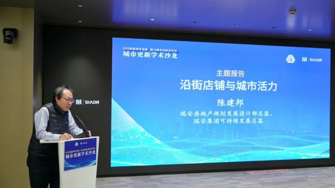 瑞安房地产规划发展设计部总监、瑞安集团可持续发展总监陈建邦围绕“沿街店铺与城市活力”作主题报告。报告提出,沿街店铺是营造活力街道的重点,而活力街道则是社区与城市活力的源泉。报告探讨了沿街店铺逐渐消失这一趋势所带来的城市问题,并从多角度提出相应建议,从而支持街铺复兴,延续城市的生机与魅力。